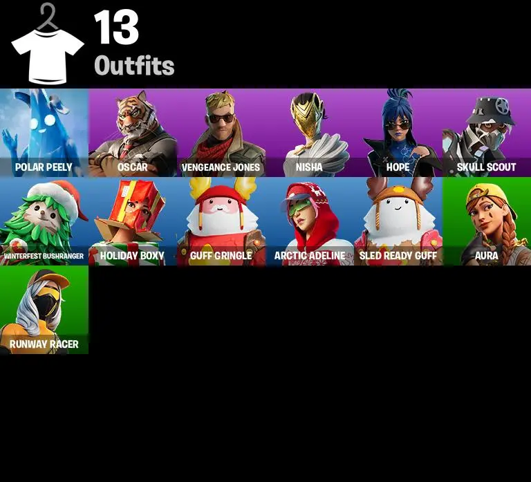 【PC/NS/XBOX/PSN】 13 skins 🔥 Polar Peely 🔥 Skull Scout 🔥 Hope 🔥 Nisha 🔥 Vengeance Jones 🔥 Oscar 🔥 Sled Ready Guff 🔥 Arctic Adeline 🔥 300 VB