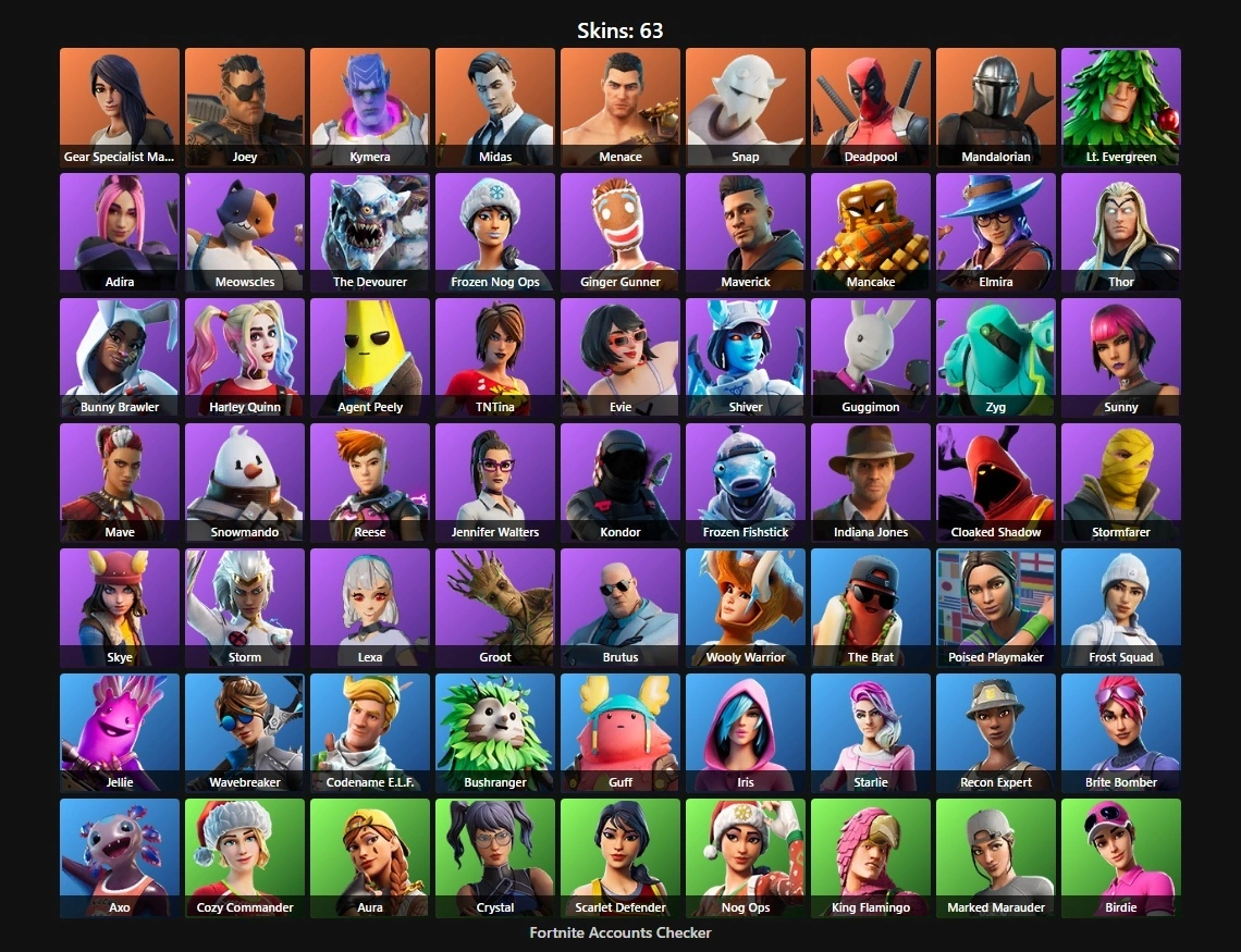 PC/PSN 63 Skins⚡ | Midas | Deadpool | Gear Specialist Maya | Joey | Kymera | Menace | Snap | Mandalorian | Lt. Evergreen | Adira | Meowscles | The Devourer