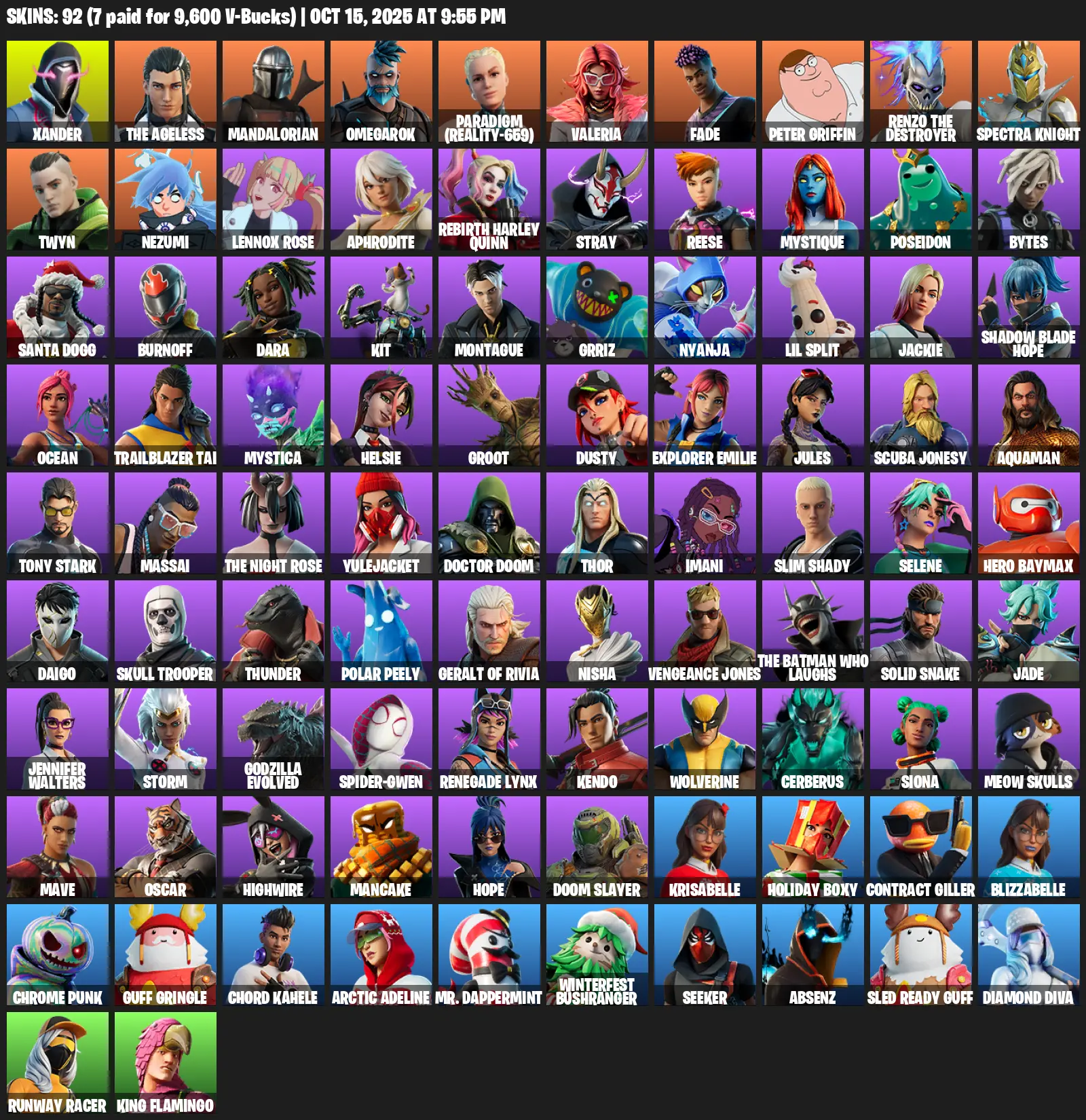 [PC/PSN] | 92 skins | Xander | The Ageless | Mandalorian | Omegarok | Paradigm (Reality-659) | Valeria | Fade | Peter Griffin | #RFY3300 | #MBFN