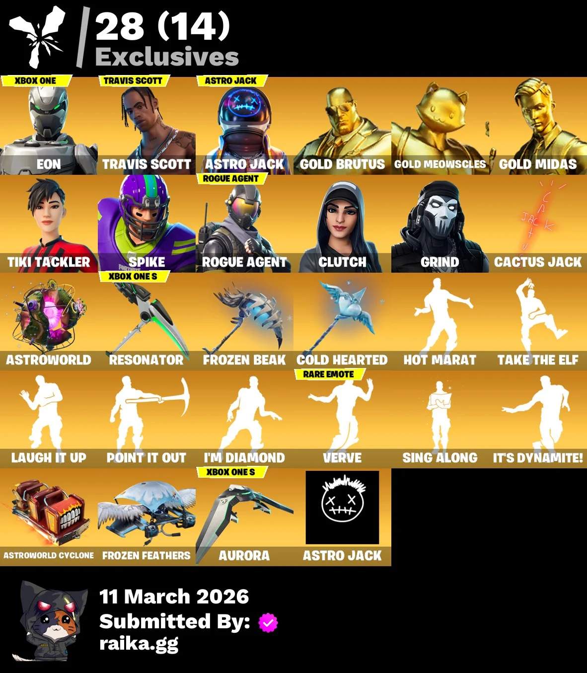 [PC/PSN/XBOX] 1000 VB | 184 skins | Eon | Travis Scott | Astro Jack | Gold Brutus | Gold Meowscles | Gold Midas | Tiki Tackler | Spike | Rogue Agent | Clutch | Grind