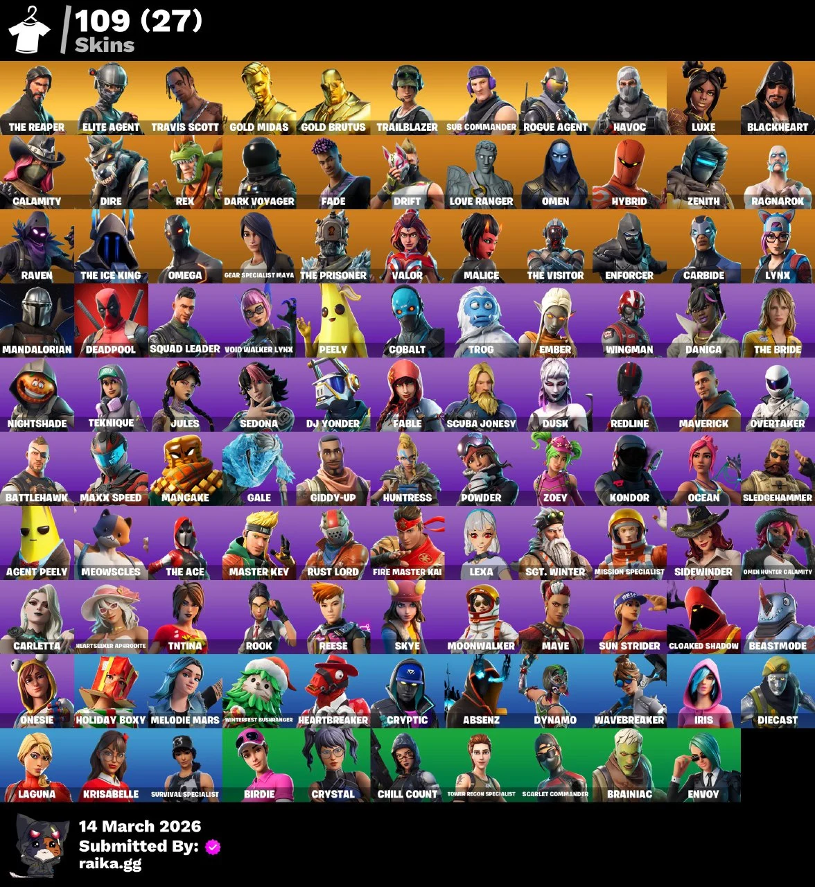 [PC/PSN/XBOX] 109 skins | 1250 VB | The Reaper | Elite Agent | Travis Scott | Gold Midas | Gold Brutus | Trailblazer | Sub Commander | Rogue Agent | Havoc | Luxe