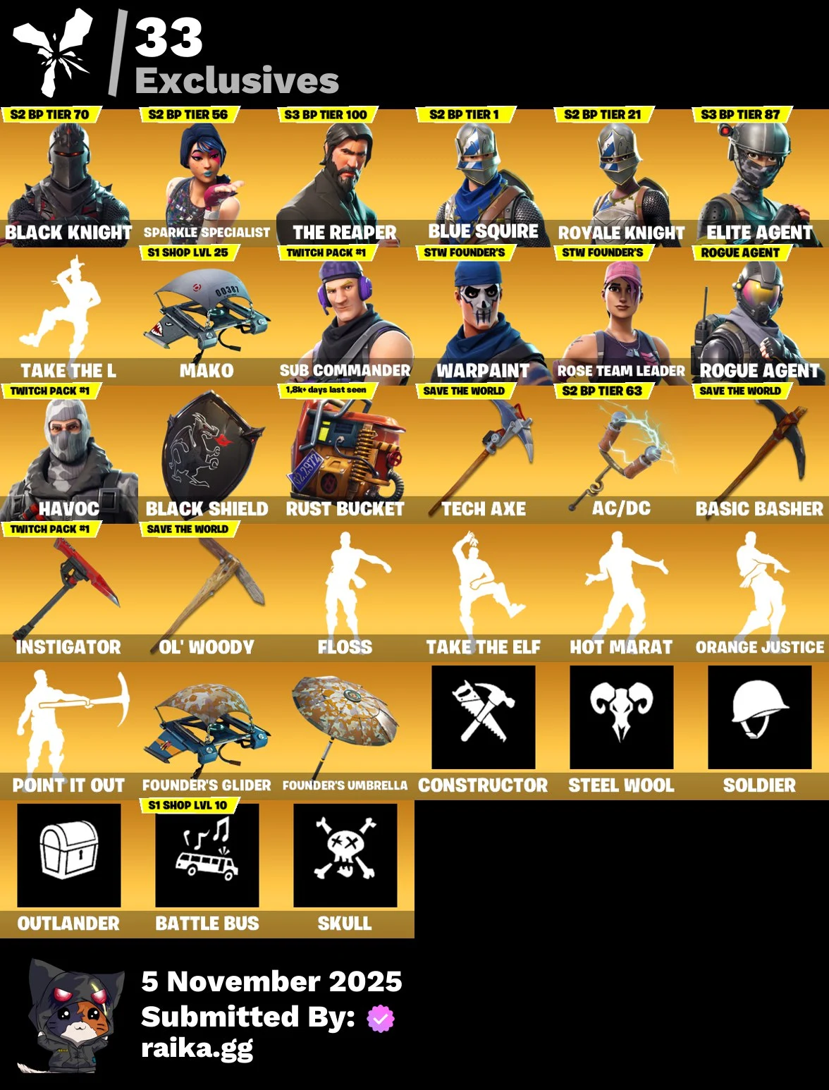 [PC/PSN/XBOX] 142 skins | OG STW | Black Knight | Sparkle Specialist | The Reaper | Blue Squire | Royale Knight | Elite Agent | Sub Commander | Rogue Agent | Havoc | 750 VB