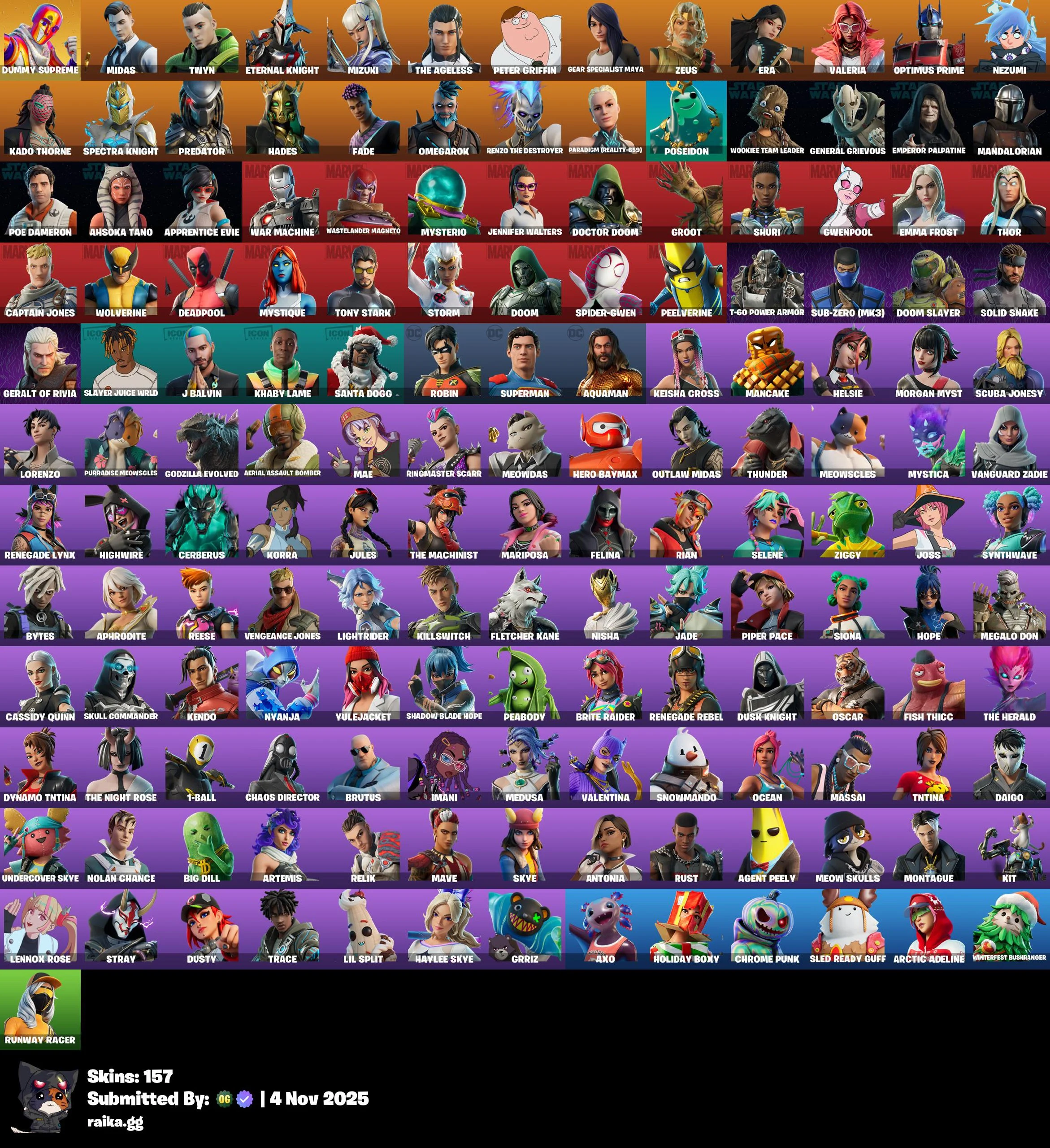 [PC/PSN/XBOX] 157 skins | Dummy Supreme | Midas | Twyn | Eternal Knight | Mizuki | The Ageless | Peter Griffin | Gear Specialist Maya | Zeus | Era | Valeria | 2050 VB