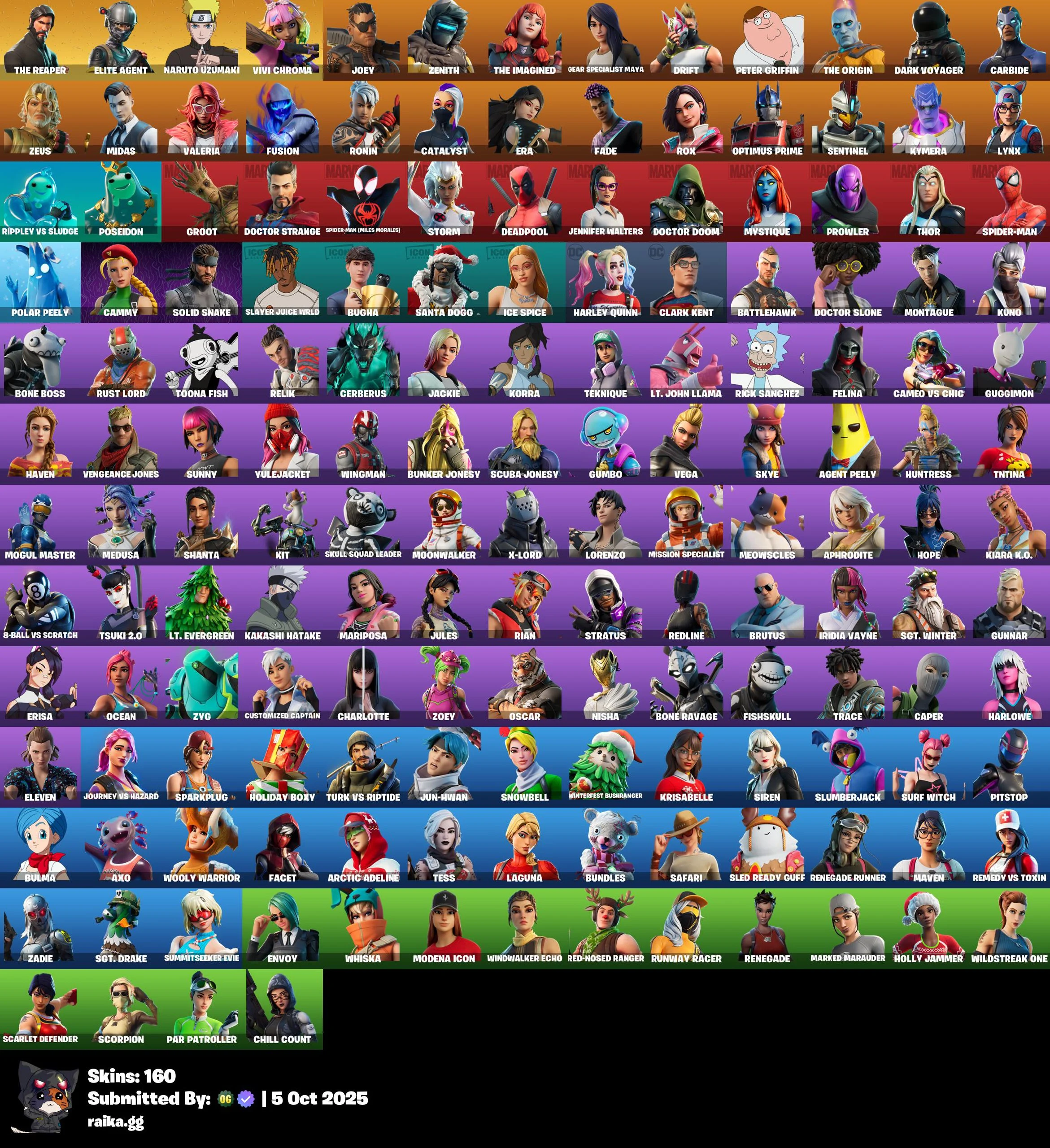 [PC/PSN/XBOX] 160 skins | The Reaper | Candy Axe | Elite Agent | Naruto Uzumaki | Vivi Chroma | Joey | Zenith | The Imagined | Astroworld Cyclone | Gear Specialist Maya | Drift | 450 VB