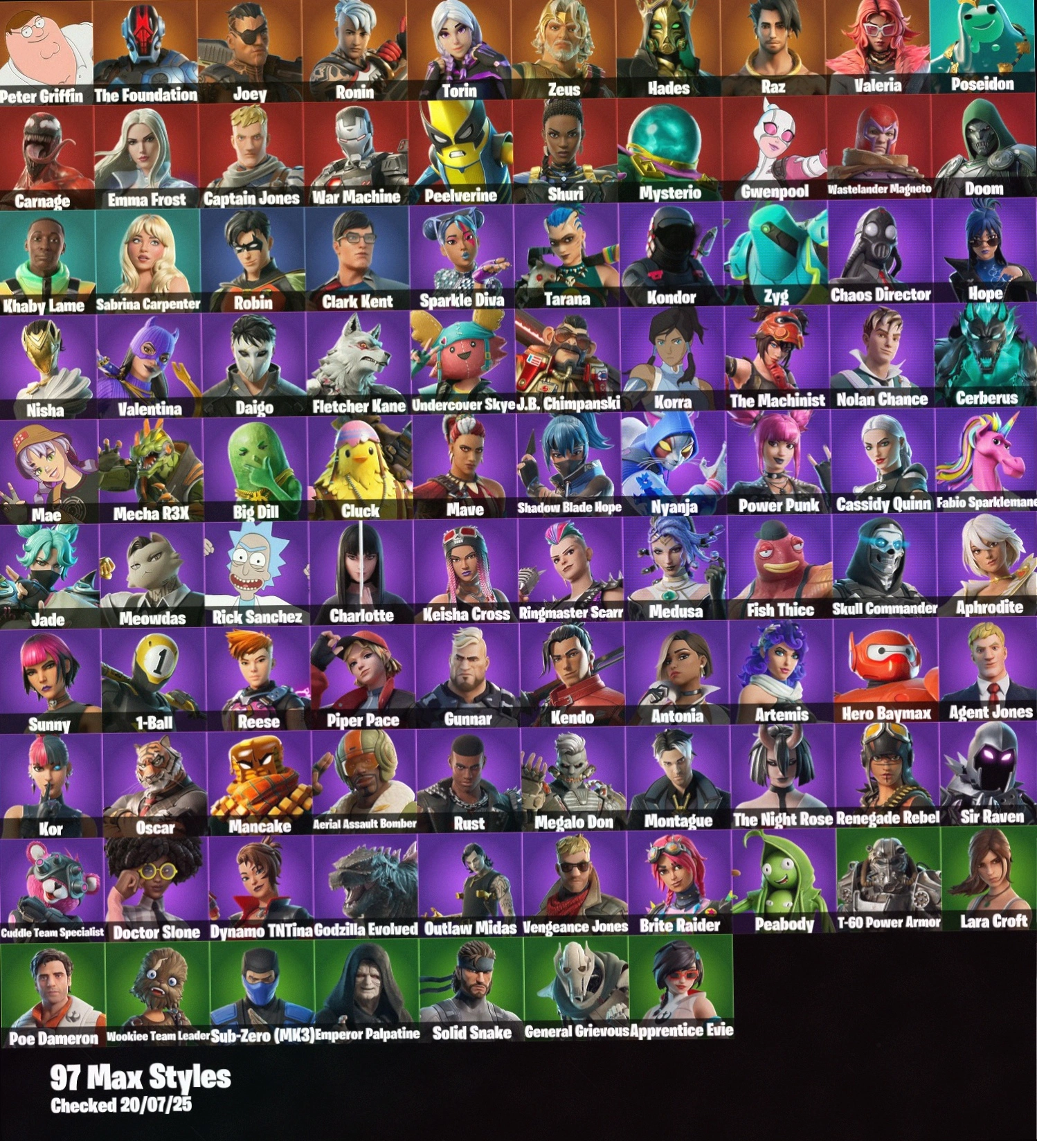 [PC/PSN/XBOX] 166 Skins+Fishstick+Astroworld Cyclone+Carnage+T-60 Power Armor+Finn the Human+Durrr Taisho+Clara+300 VB #REF-166991