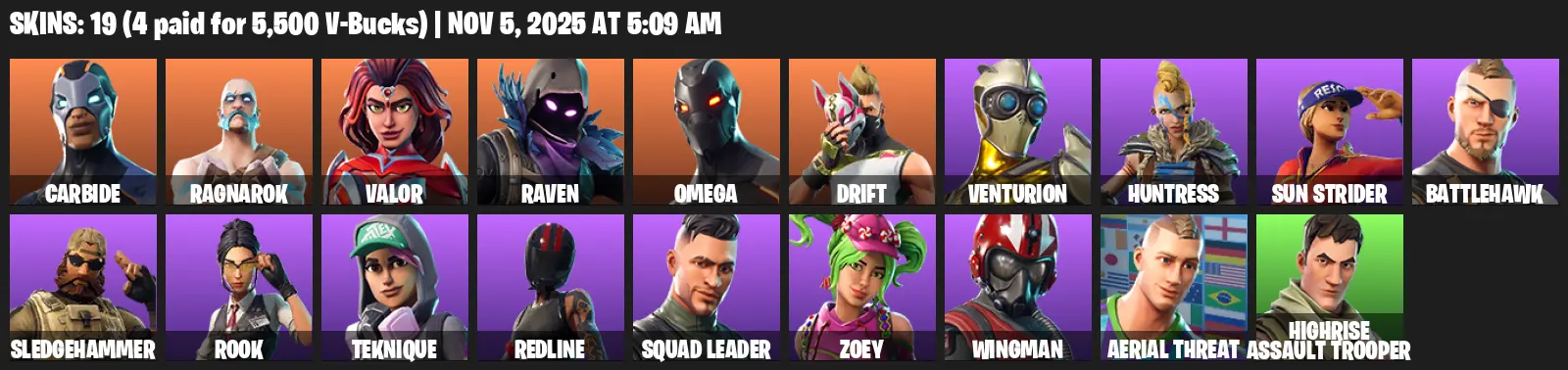 [PC/PSN/XBOX] | 19 skins | Omega | Carbide | Ragnarok | Valor | Raven | Drift | Venturion | Huntress | Sun Strider | Battlehawk | Sledgehammer | S4G