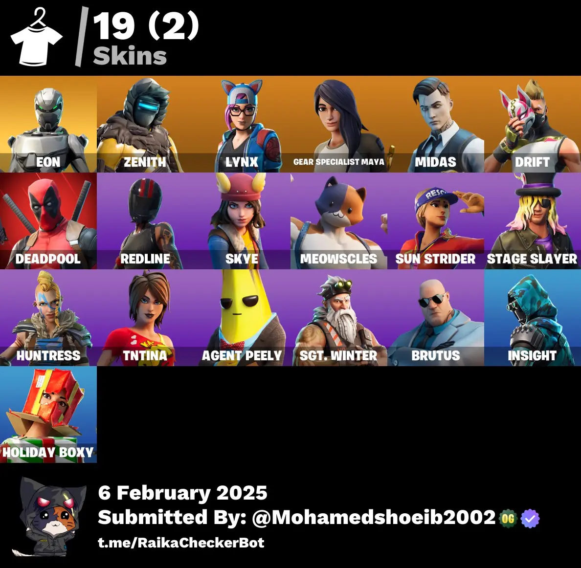 [PC/PSN/XBOX] 19 skins | Eon | Zenith | Lynx | Gear Specialist Maya | Midas | Drift | Deadpool | Redline | Skye | Meowscles | Sun Strider | Stage Slayer | 335 VB