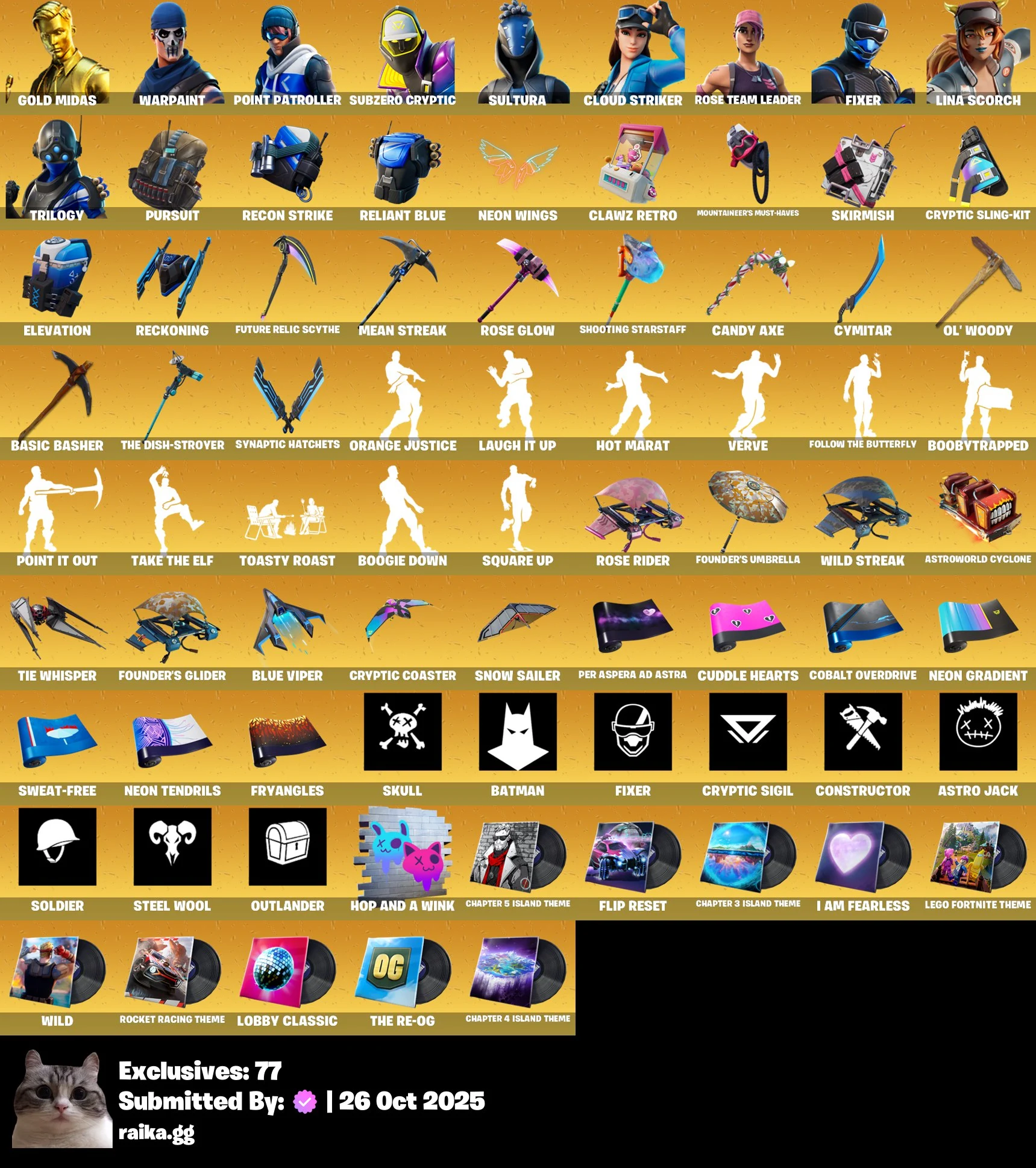 [PC/PSN/XBOX] 200 skins | OG STW | Gold Midas | Point Patroller | Subzero Cryptic | Sultura | Cloud Striker | Fixer | Lina Scorch | Trilogy | Gold | 3