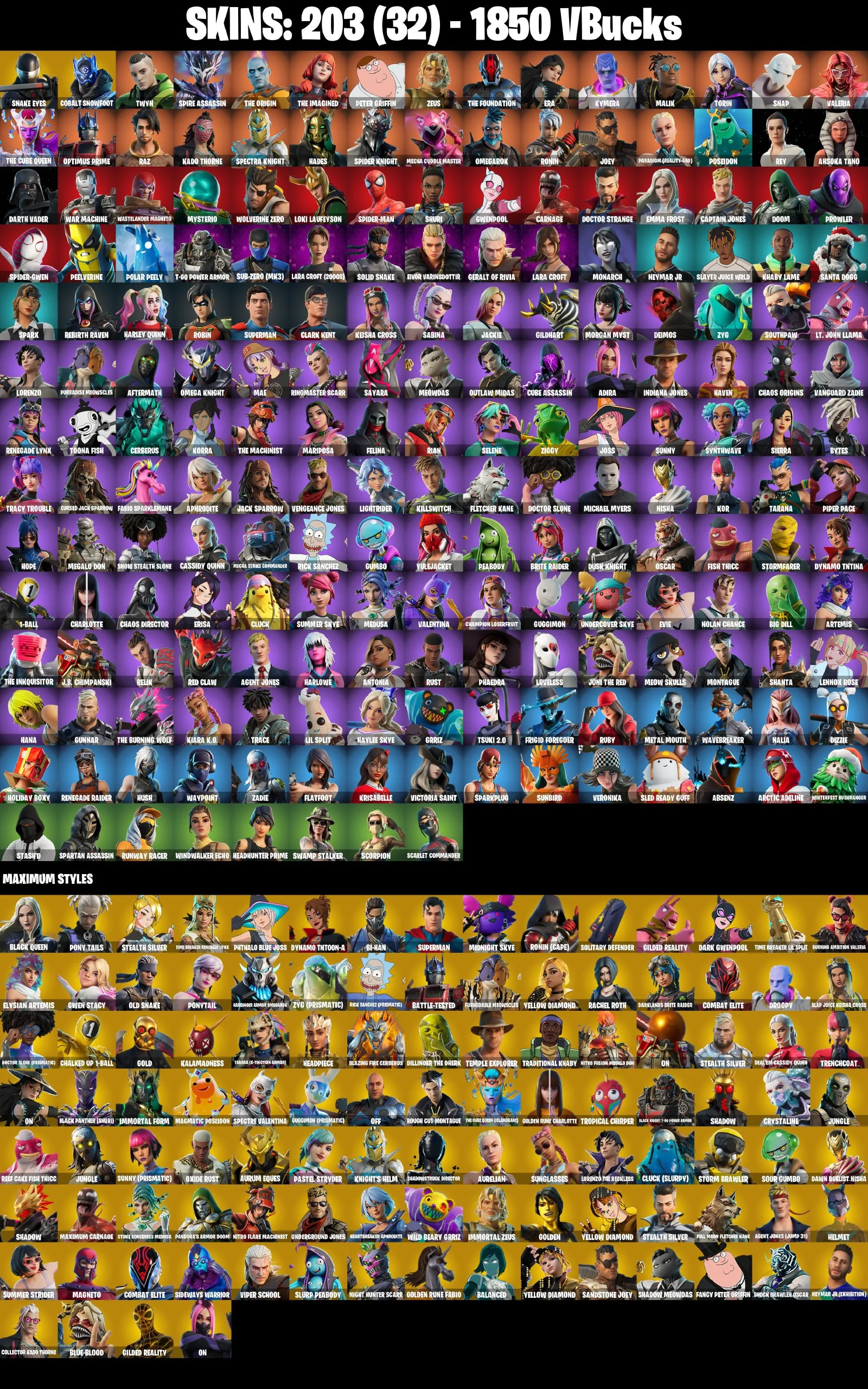 [PC/PSN/XBOX] 203 SKINS ⚡️ Renegade Raider ⚡️ Snake Eyes ⚡️ Cobalt Snowfoot ⚡️ Twyn ⚡️ Spire Assassin ⚡️ The Origin ⚡️ The Imagined⚡️1850 VB