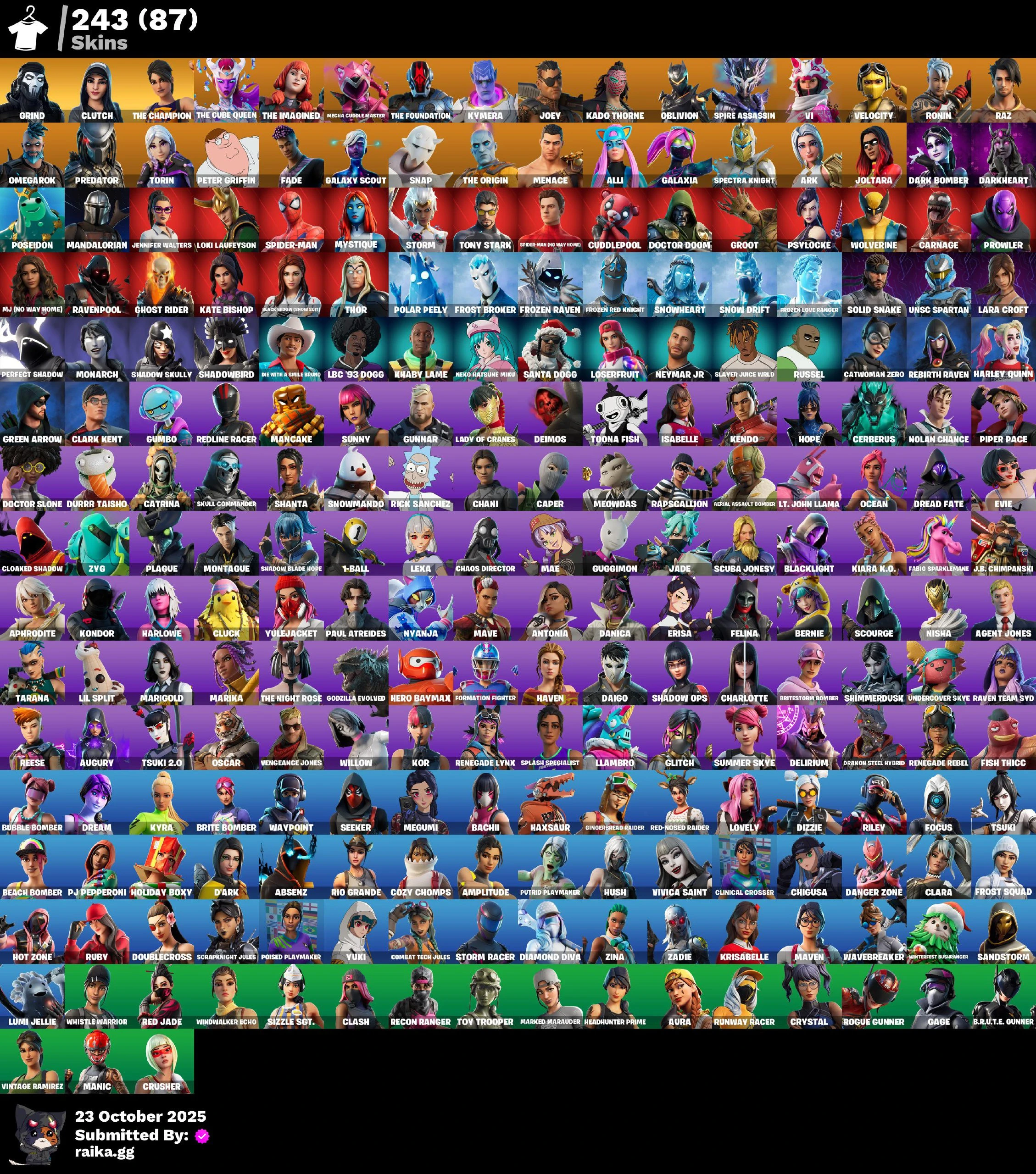 [PC/PSN/XBOX] 243 skins | Grind | Clutch | The Champion | The Cube Queen | The Imagined | Mecha Cuddle Master | The Foundation | Kymera | Joey | Kado Thorne | 1250 VB