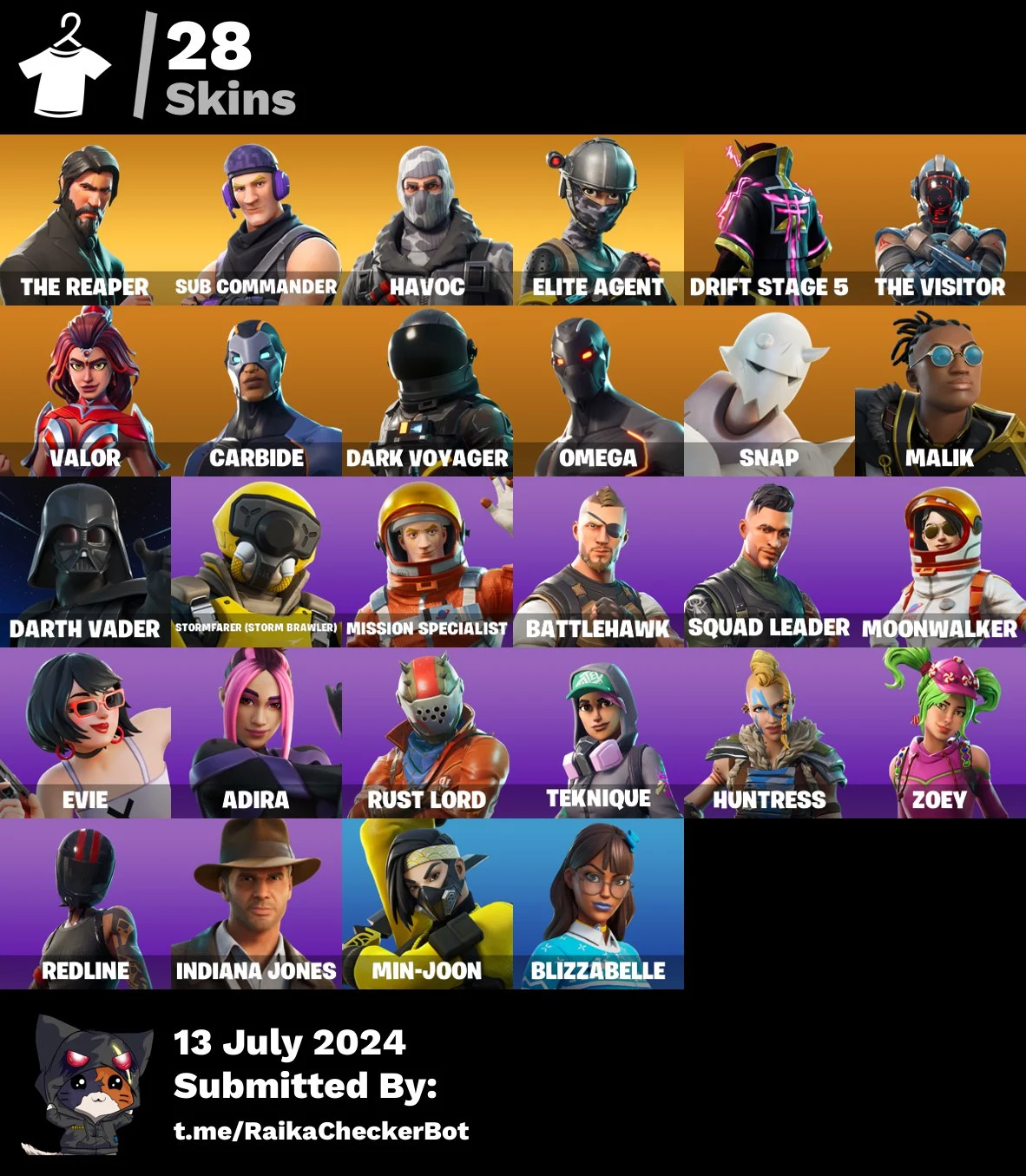 [PC/PSN/XBOX] 28 skins | The Reaper | Sub Commander | Havoc | Elite Agent | Drift Stage 5 | The Visitor | Valor | Carbide | Dark Voyager | 1100 VB