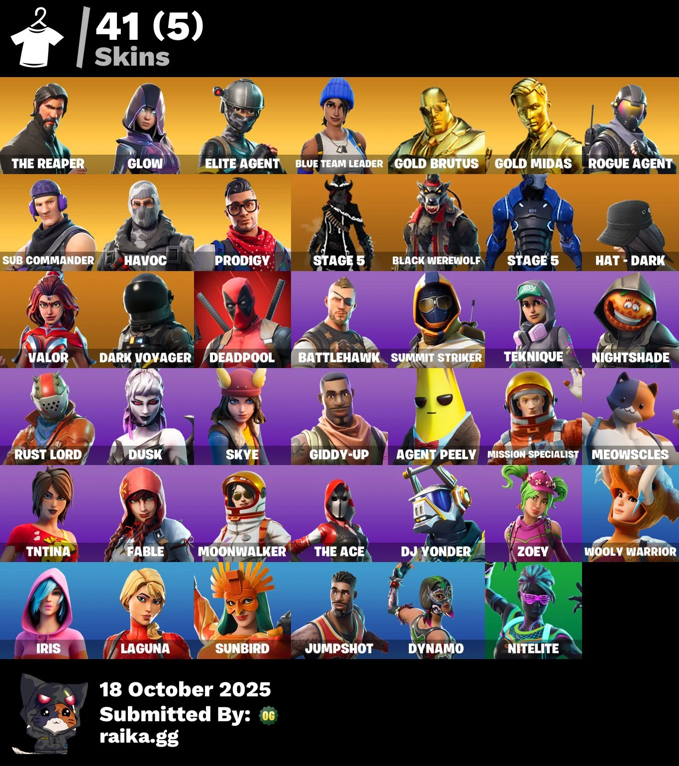 [PC/PSN/XBOX] 41 skins | The Reaper | Take The L | Glow | Elite Agent | Deadpool | Dynamo | Rust Bucket lai501