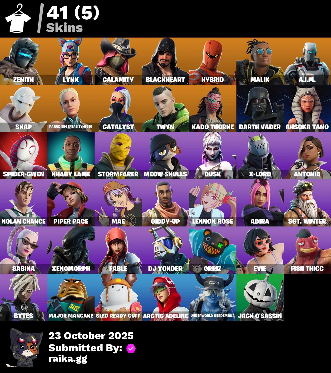 [PC/PSN/XBOX] 41 skins | Zenith | Lynx | Calamity | Blackheart | Hybrid | Malik | A.I.M. | Snap | Paradigm (Reality-659) | Catalyst | Twyn | Kado Thorne | 500 VB