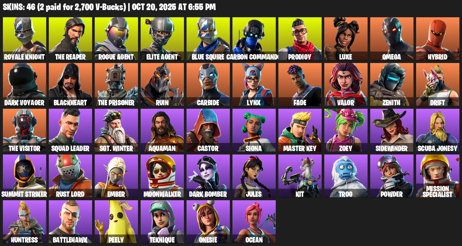 [PC/PSN/XBOX] | 46 skins | Floss | Take The L | Royale Knight | The Reaper | Elite Agent | Blue Squire | Omega | Mako | Rogue Agent | S4G