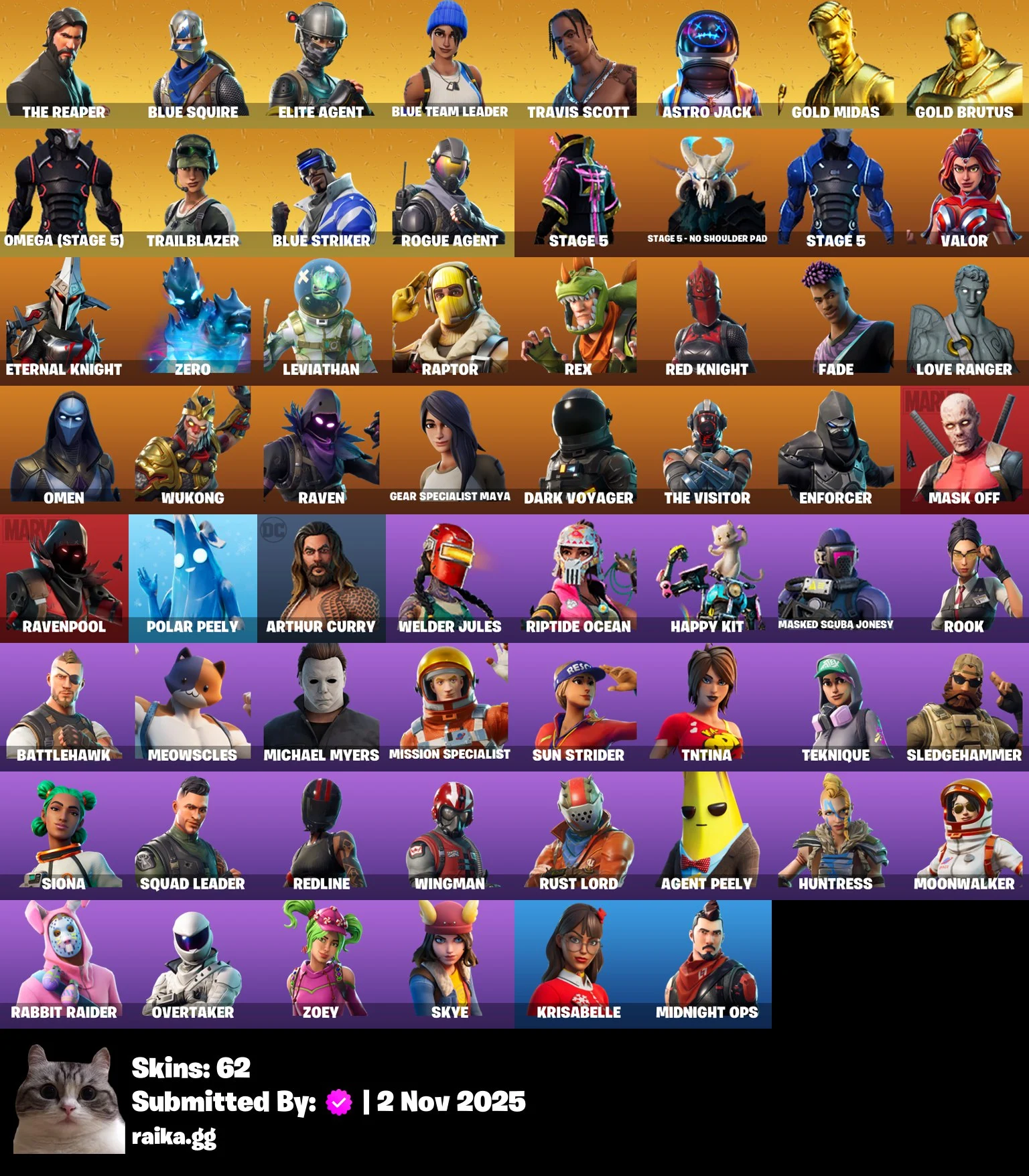 [PC/PSN/XBOX] 62 skins | The Reaper | Blue Squire | Elite Agent | Blue Team Leader | Travis Scott | Astro Jack | Gold Midas | Gold Brutus | Omega (sta