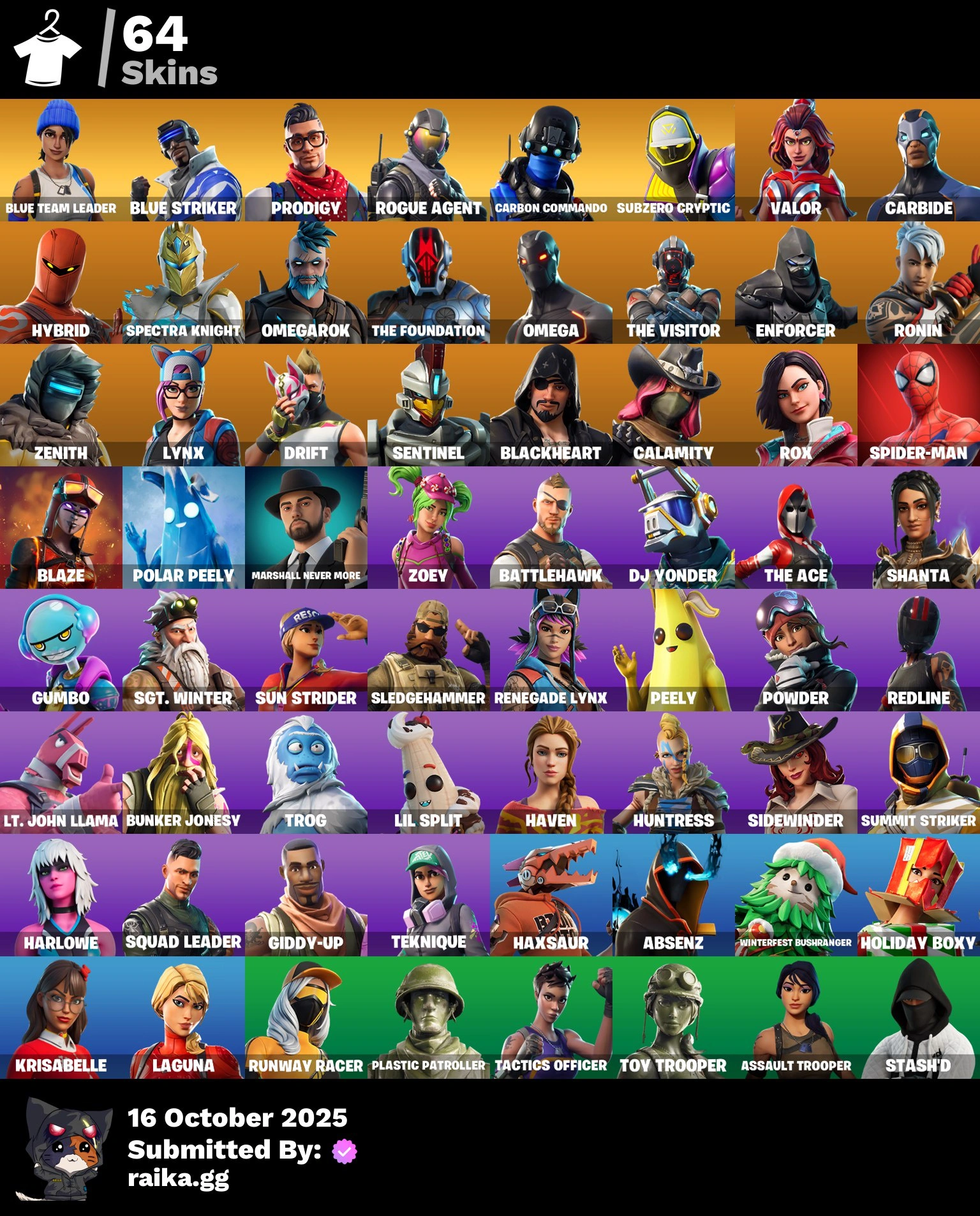 [PC/PSN/XBOX] 64 skins | Blue Team Leader | Blue Striker | Prodigy | Rogue Agent | Carbon Commando | Subzero Cryptic | Valor | Carbide | Hybrid | 300 VB