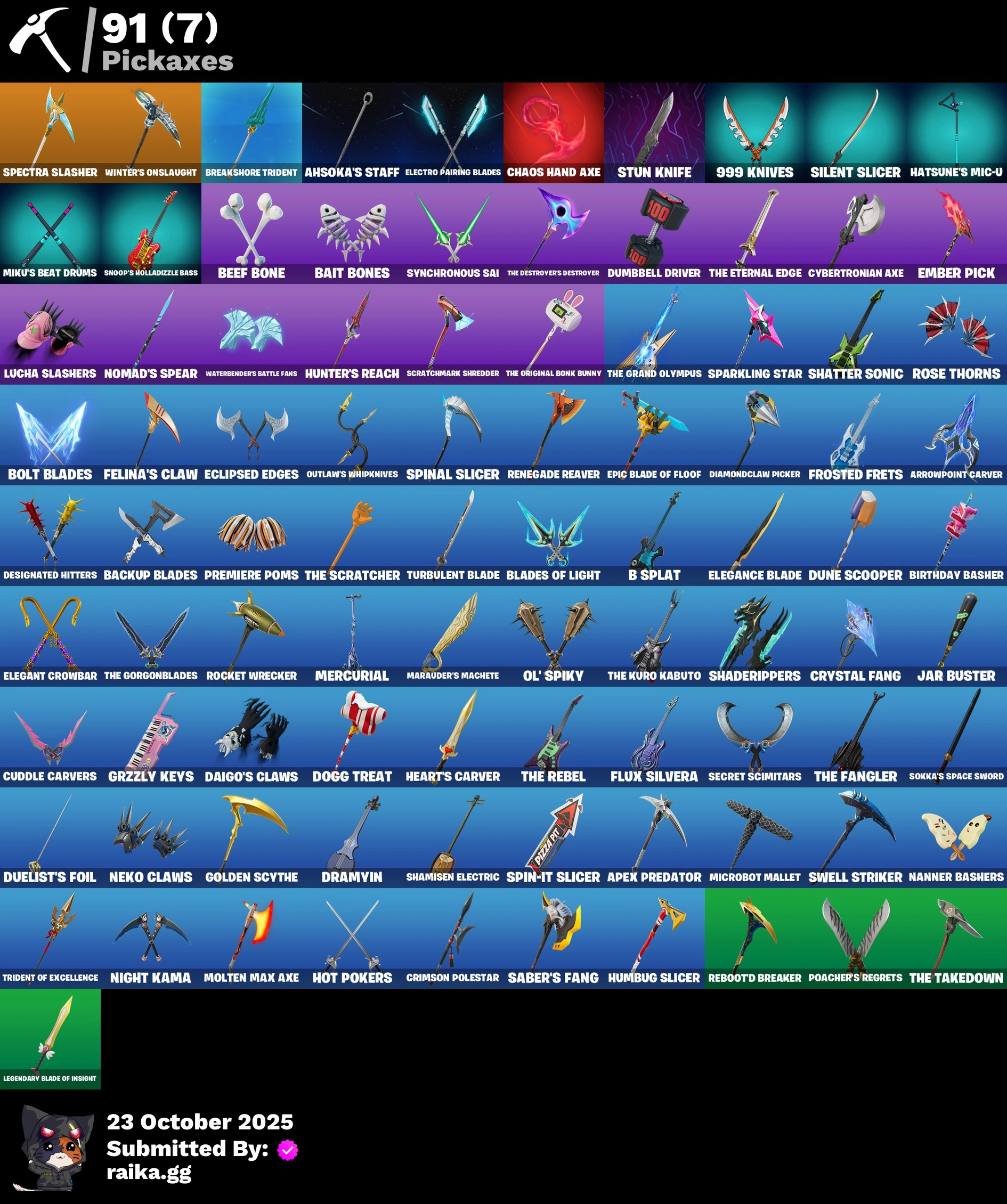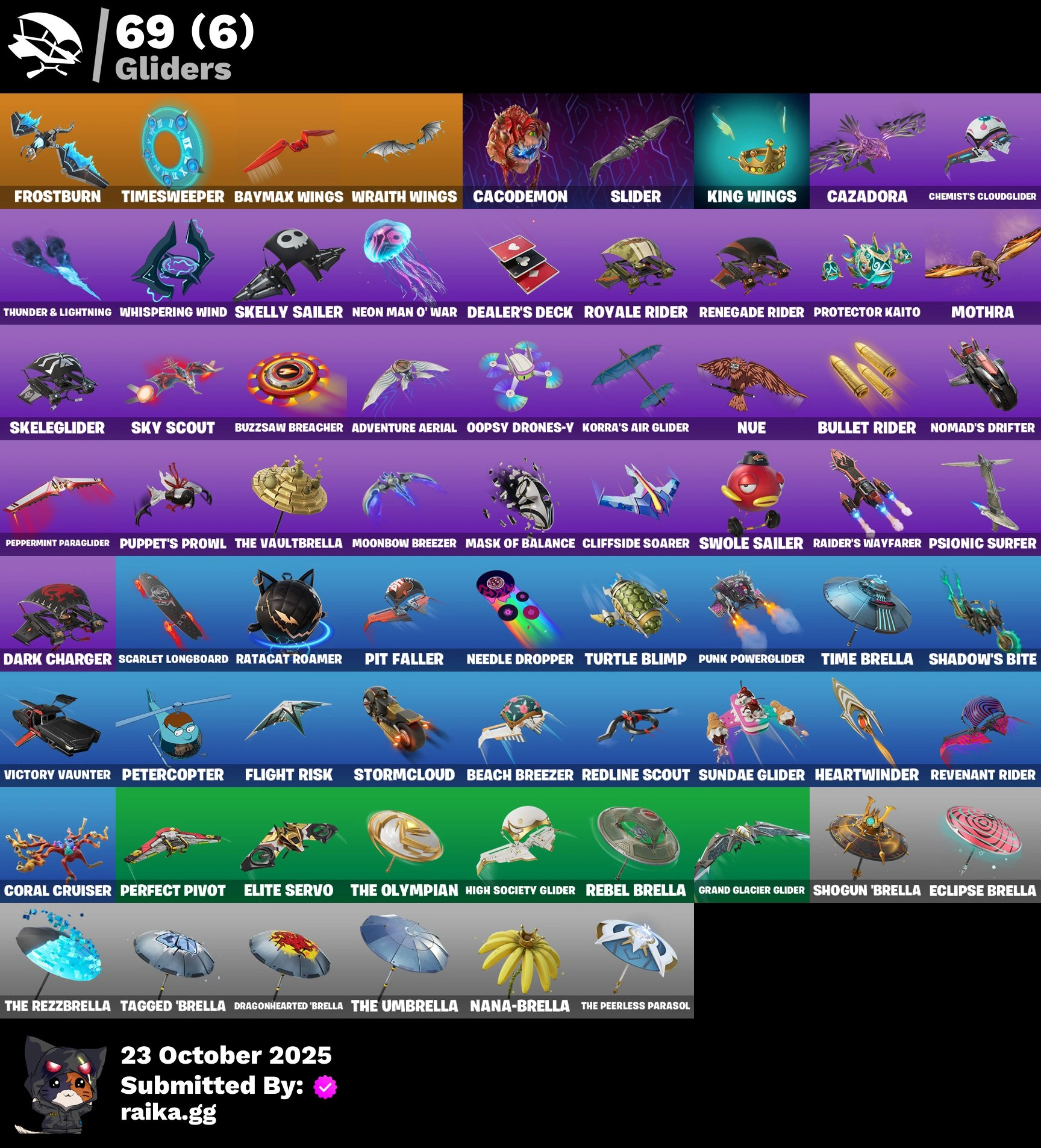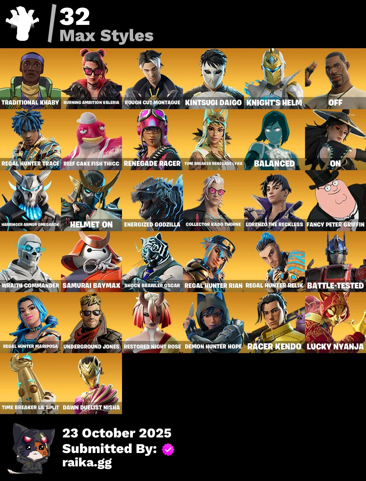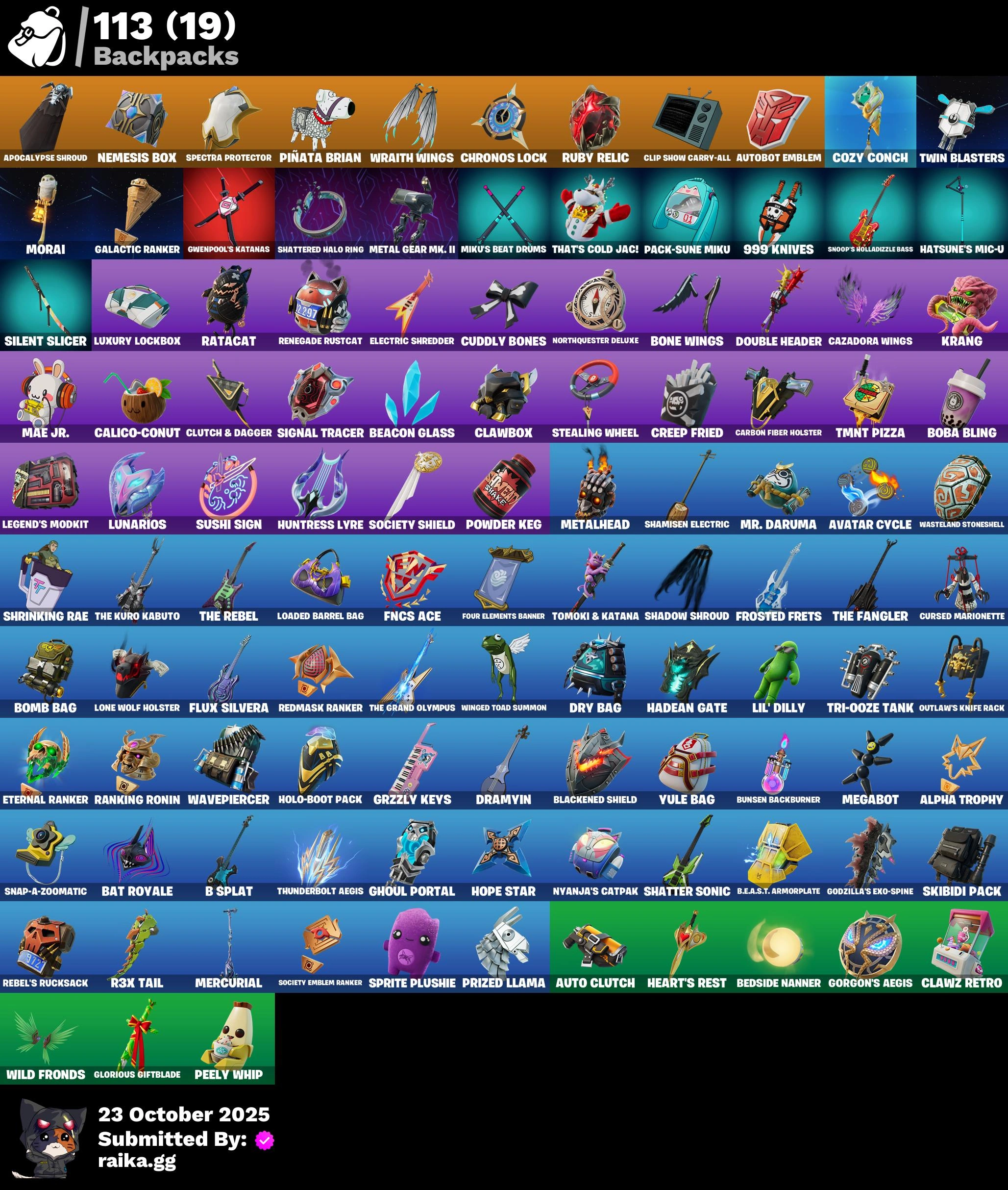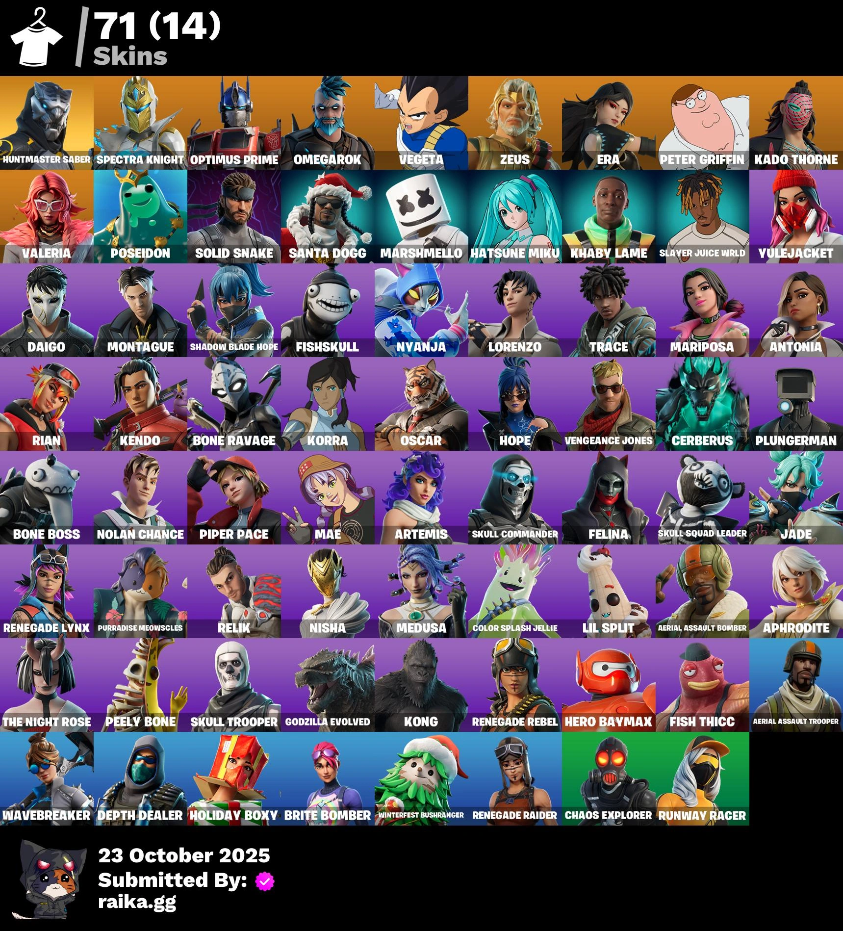 [PC/PSN/XBOX] 71 skins | Renegade Raider | Aerial Assault Trooper | Huntmaster Saber | Spectra Knight | Optimus Prime | Omegarok | Vegeta | Zeus | Era | 100 VB