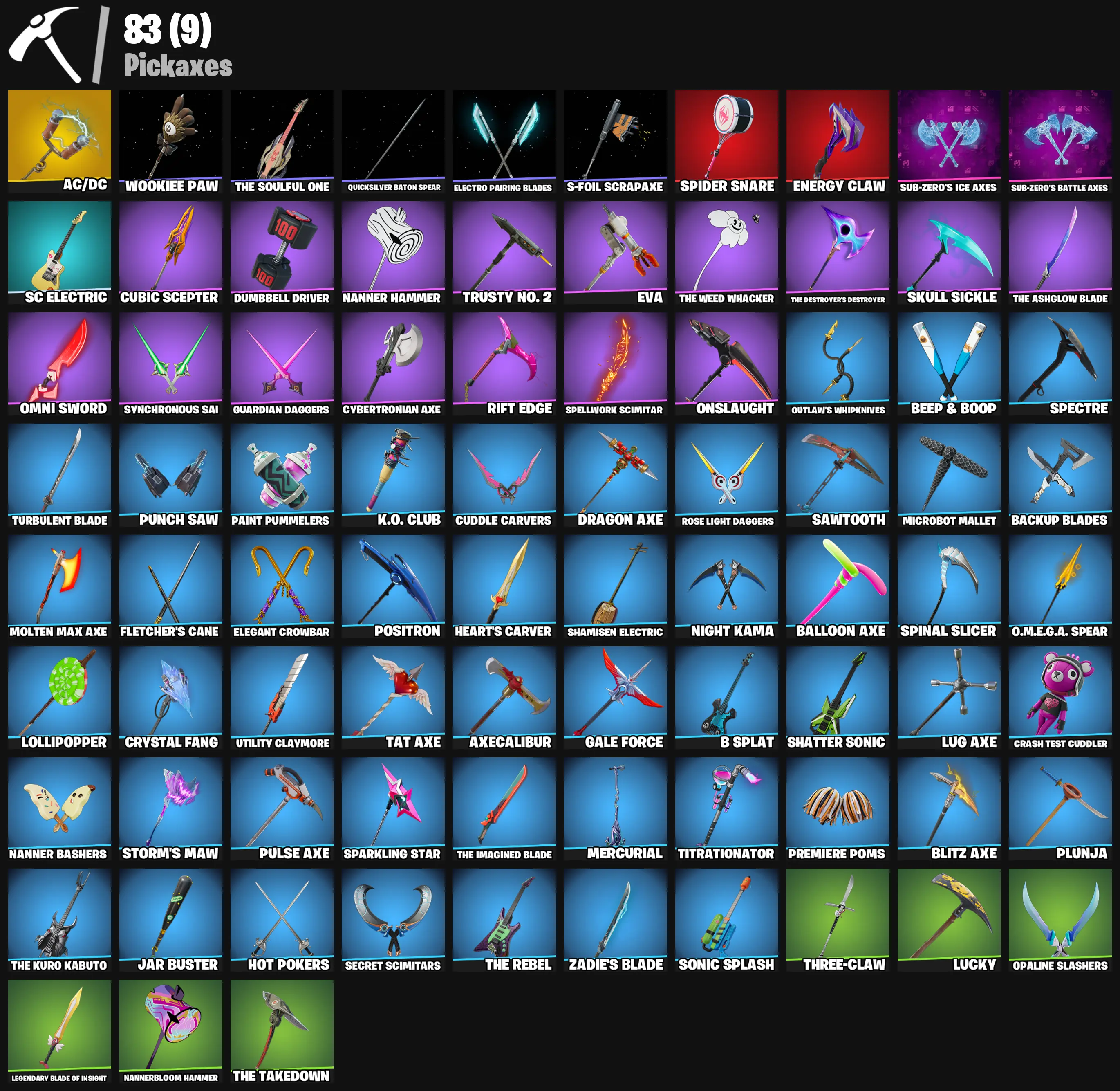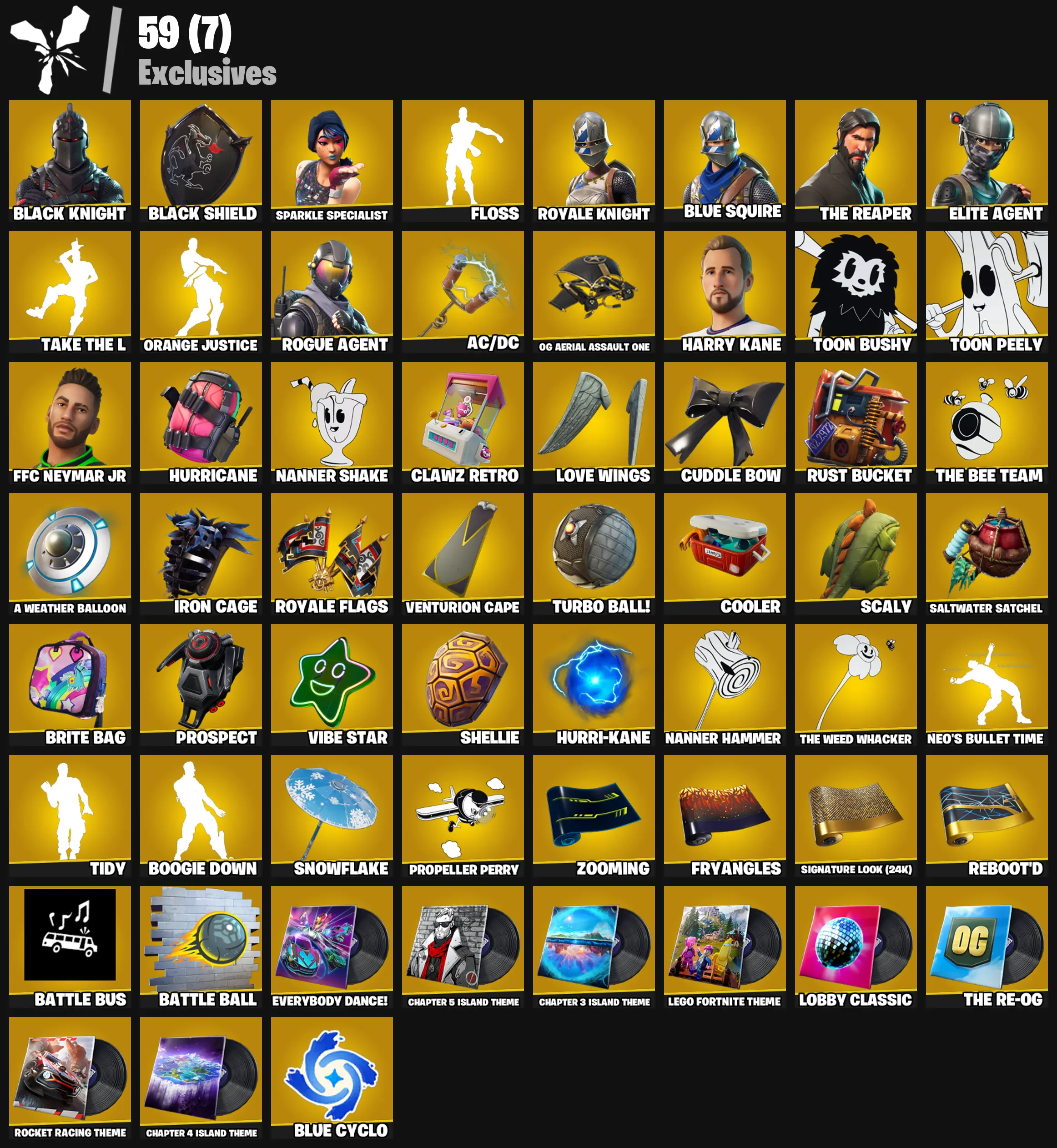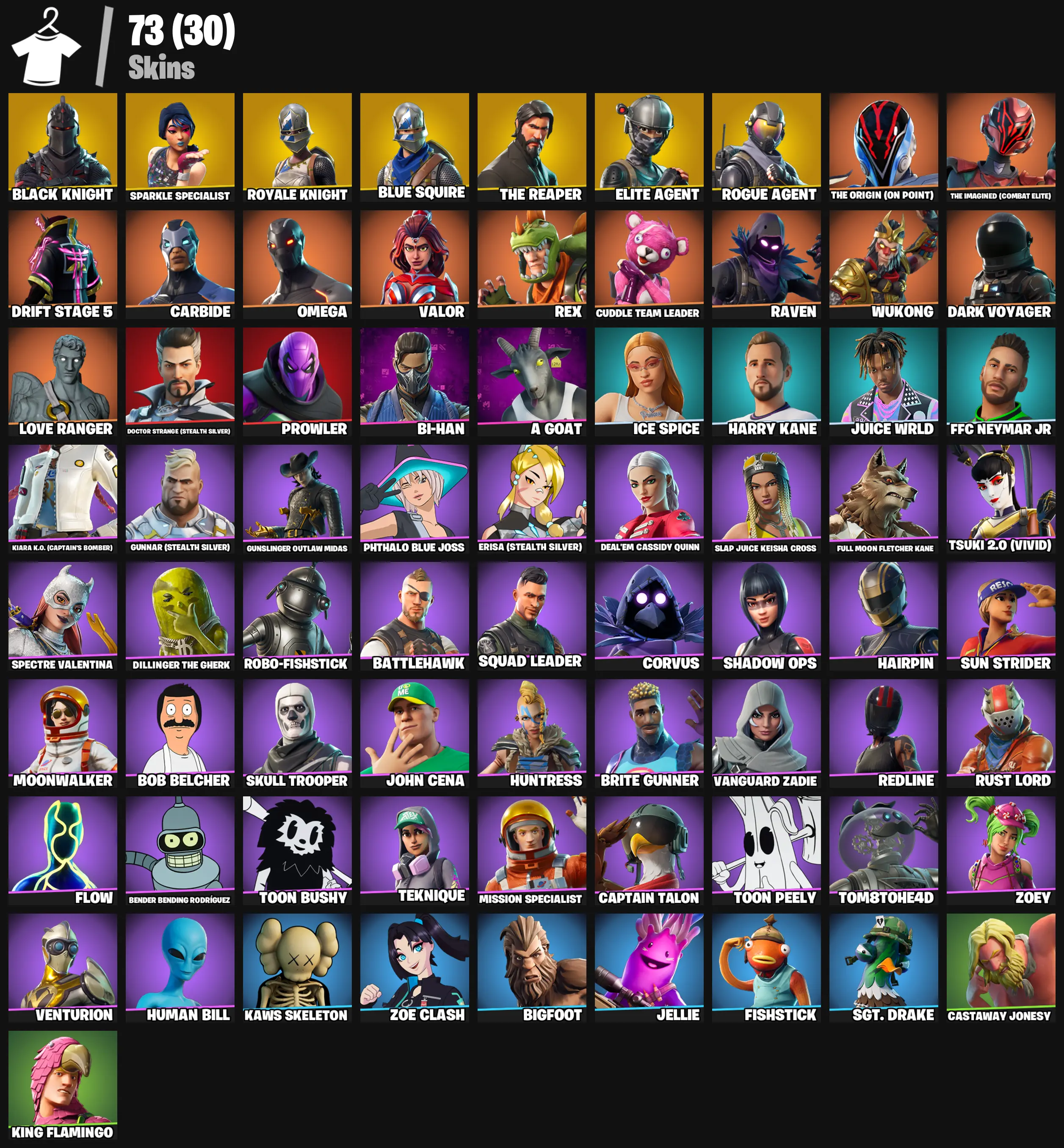 🧊 [PC/PSN/XBOX] 73 SKINS | BLACK KNIGHT, OG AERIAL ASSAULT ONE, FLOSS, SPARKLE SPECIALIST, ROYALE KNIGHT, BLUE SQUIRE, THE REAPER, ELITE AGENT, TAKE THE L, AC/DC, HARRY KANE, OMEGA, A GOAT, TOON PEELY, SKULL TROOPER, CARBIDE, SNOWFLAKE