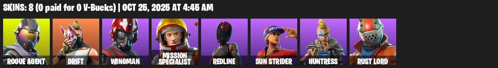 [PC/PSN/XBOX] | 8 skins | Take The L | Rogue Agent | Drift | Wingman | Mission Specialist | Redline | Sun Strider | Huntress | Rust Lord | S4G