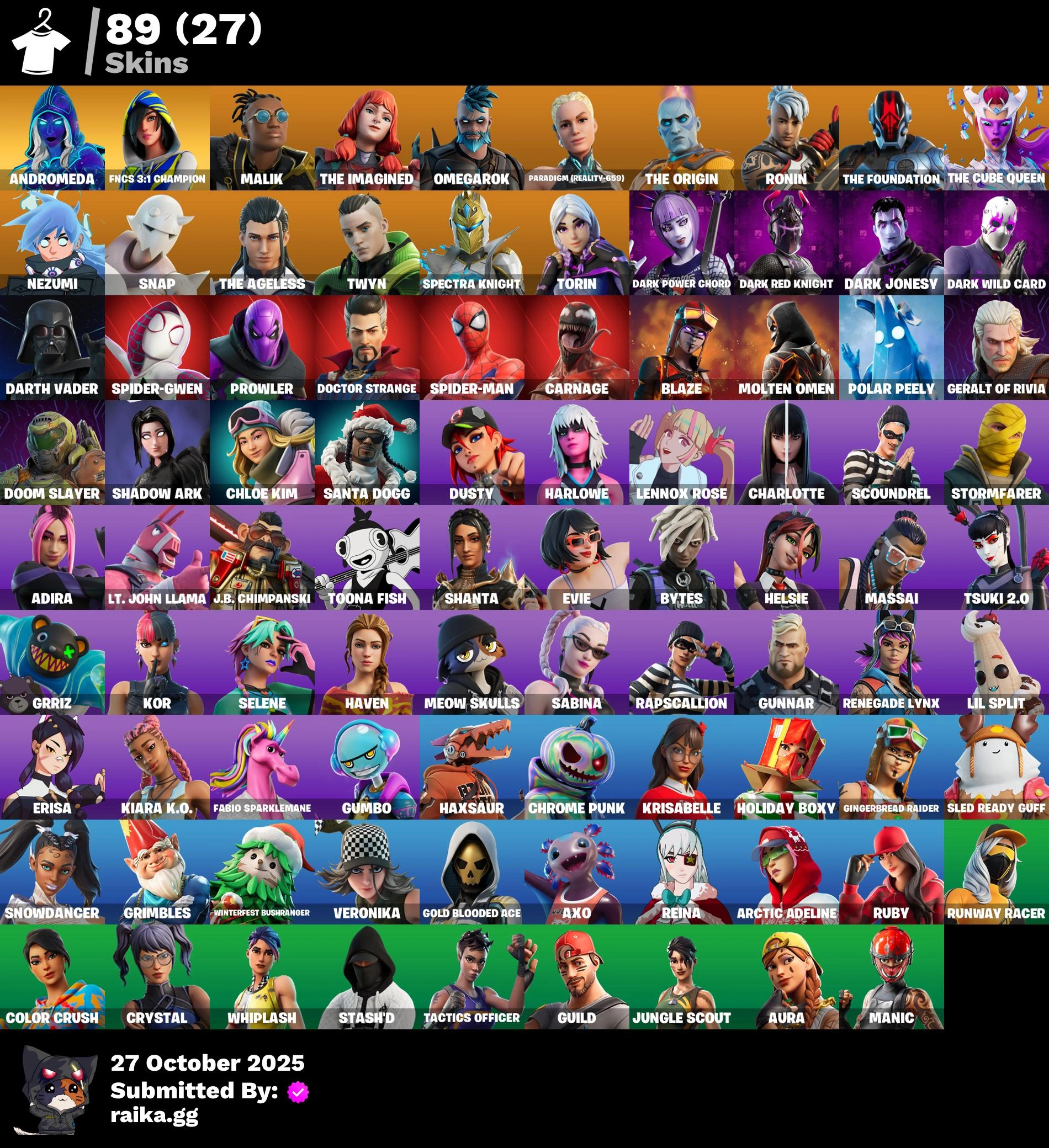 [PC/PSN/XBOX] 89 skins | Andromeda | FNCS 3:1 Champion | Malik | The Imagined | Omegarok | Paradigm (Reality-659) | The Origin | Ronin | The Foundation | 0 VB