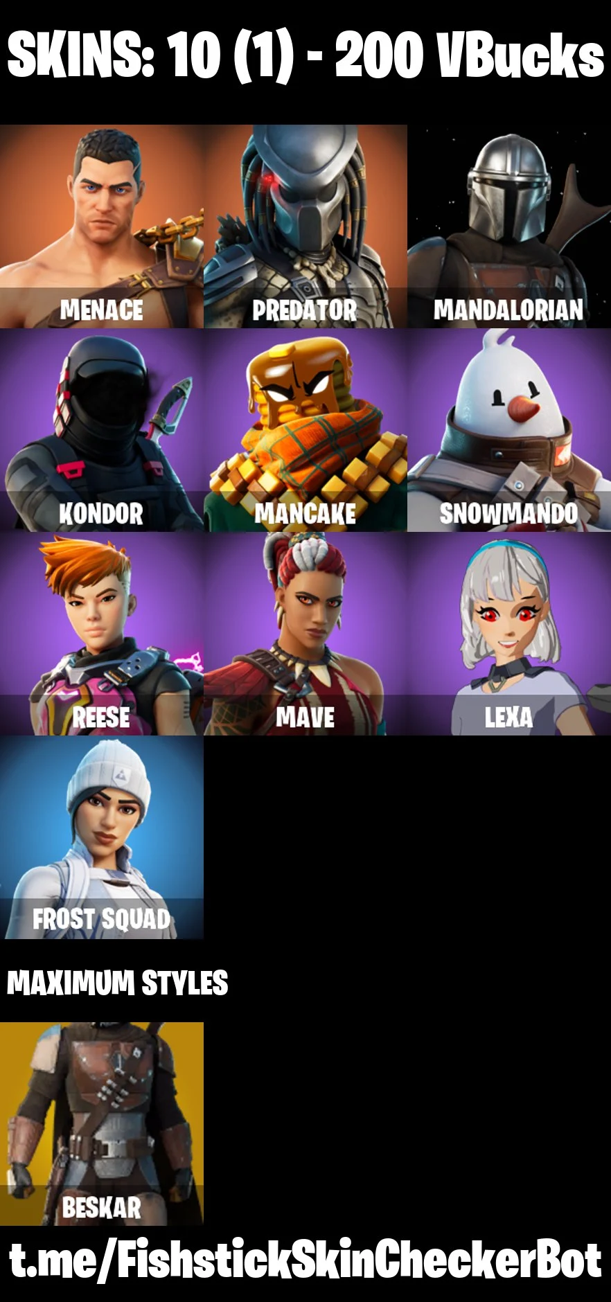 【PC/PSN/XBOX】10 skins | Menace | Predator | Mandalorian | Kondor | Mancake | Snowmando | Reese | Mave | Lexa | Frost Squad | Soul's Reach | Hunter's Trophy | 200 VB |