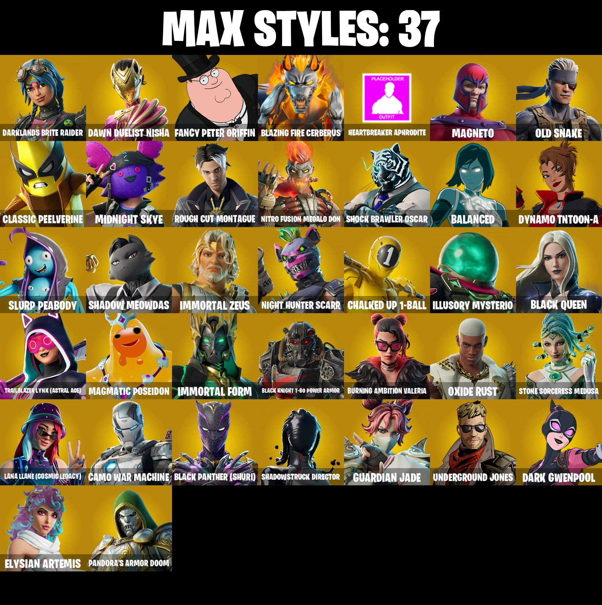 ⭐ [PC/PSN/XBOX/NINTENDO/MOBILE] 76 SKINS | VALERIA | PETER GRIFFIN | HADES | ZEUS | POSEIDON | WAR MACHINE | EMMA FROST | DOOM | SHURI | CAPTAIN JONES | WASTELANDER MAGNETO | GWENPOOL | MYSTERIO | PEELVERINE | TECTONIC KOMPLEX | 400 VBUCKS | EMAIL