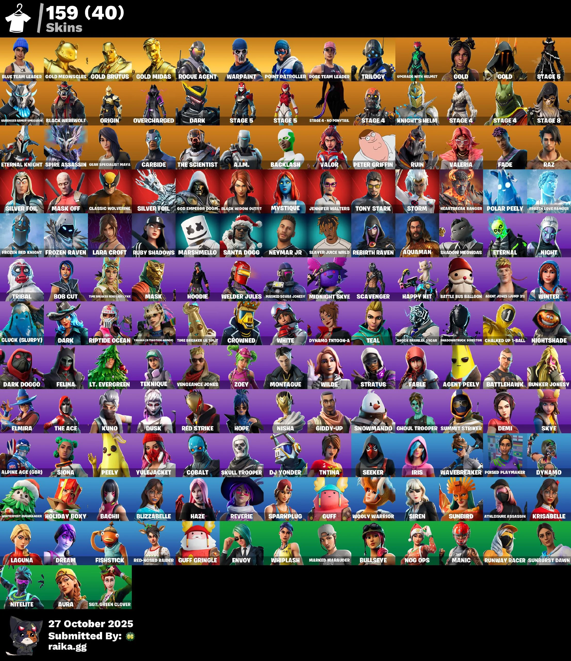 [PC/XBOX] 159 skins | OG STW | Leviathan Axe | Merry Mint Axe | Aura | Lara Croft | Ghoul Trooper | Tony Stark Mam83