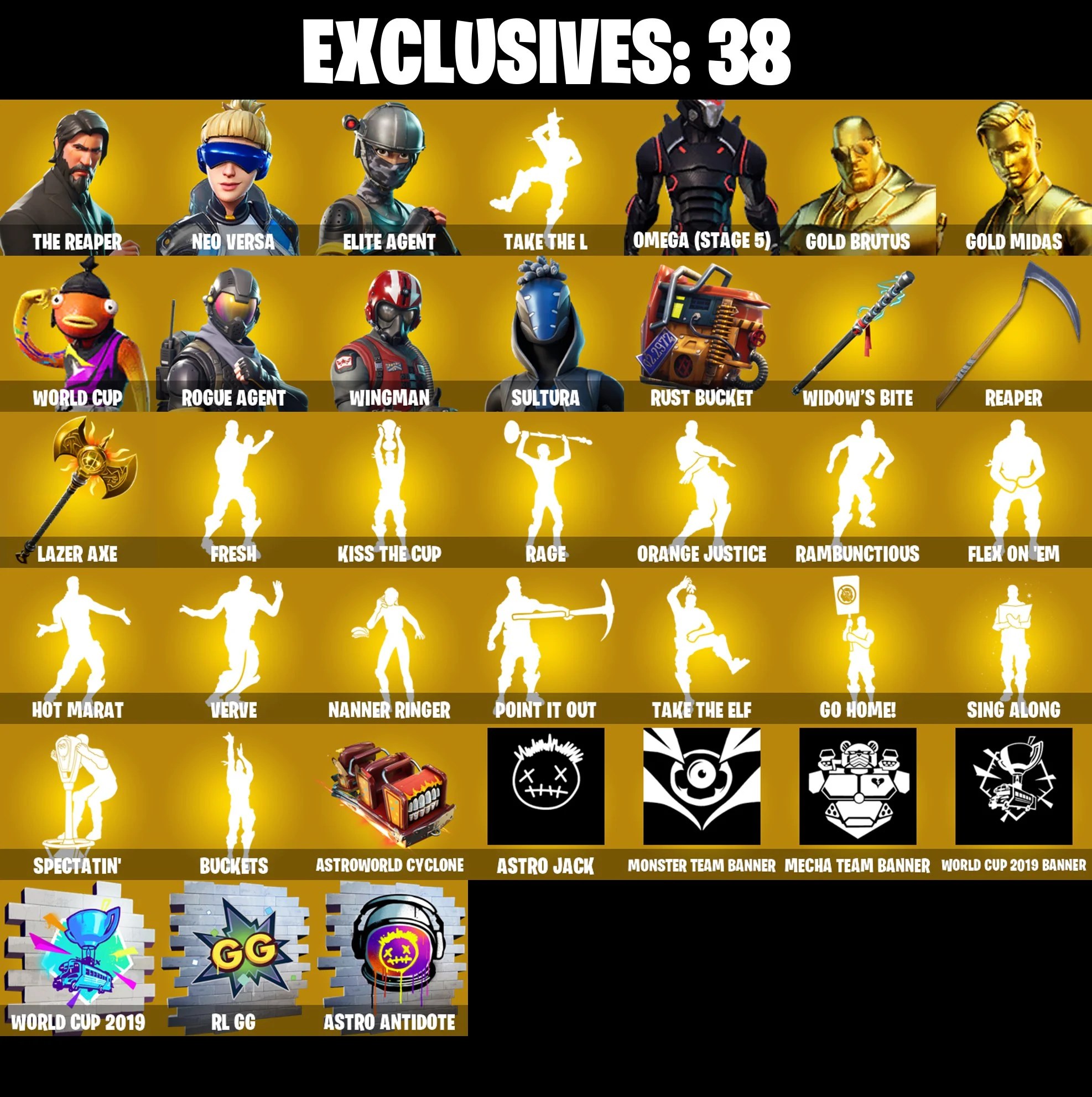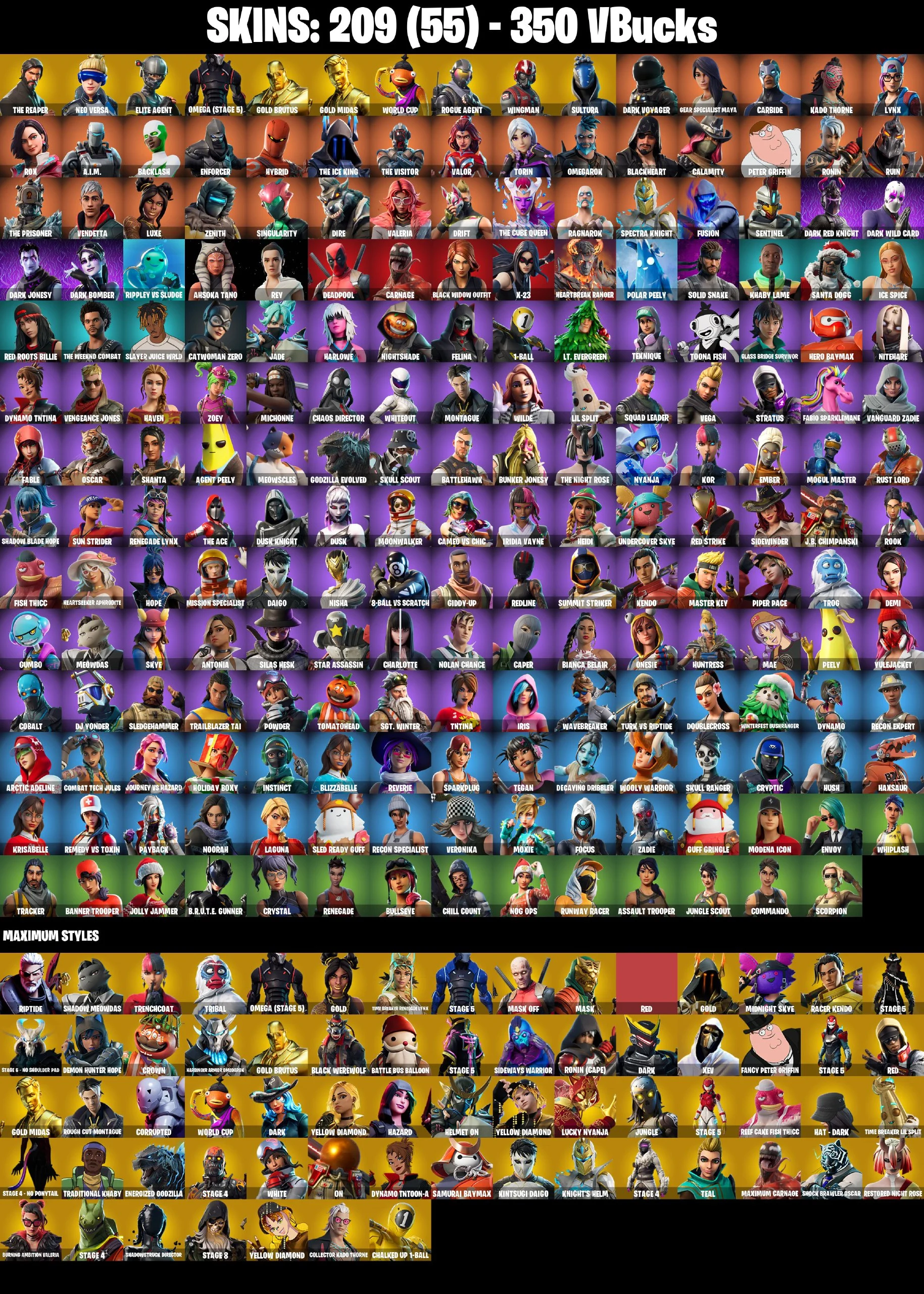 [PC/XBOX] 209 SKINS ⚡️ The Reaper ⚡️ Neo Versa ⚡️ Elite Agent ⚡️ Omega [stage 5] ⚡️ Gold Brutus ⚡️ Gold Midas ⚡️ WORLD CUP ⚡️ Rogue Agent