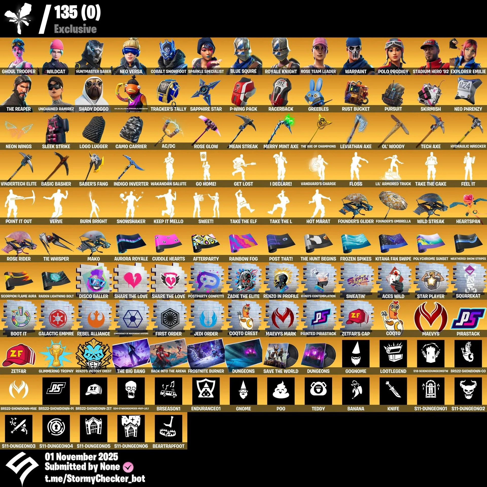 [PC/XBOX] | 473 Skins | OG STW | OG Ghoul Trooper | Wildcat | Huntmaster Saber | Neo Versa | Cobalt Snowfoot | Sparkle Specialist | AC/DC | Rose Glow | Mean Streak | GoGnome | LootLegend | S18-ScienceDungeonSTW | 100 VB