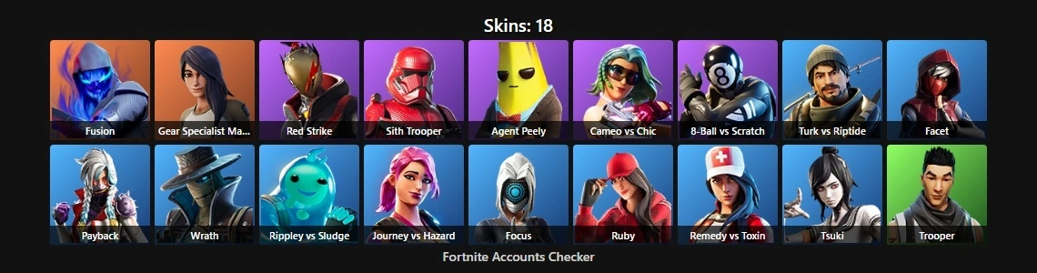 PC/XBOX/PSN 18 Skins⚡ | Fusion | Gear Specialist Maya | Red Strike | Sith Trooper | Agent Peely | Cameo vs Chic | 8-Ball vs Scratch | Turk vs Riptide | Facet