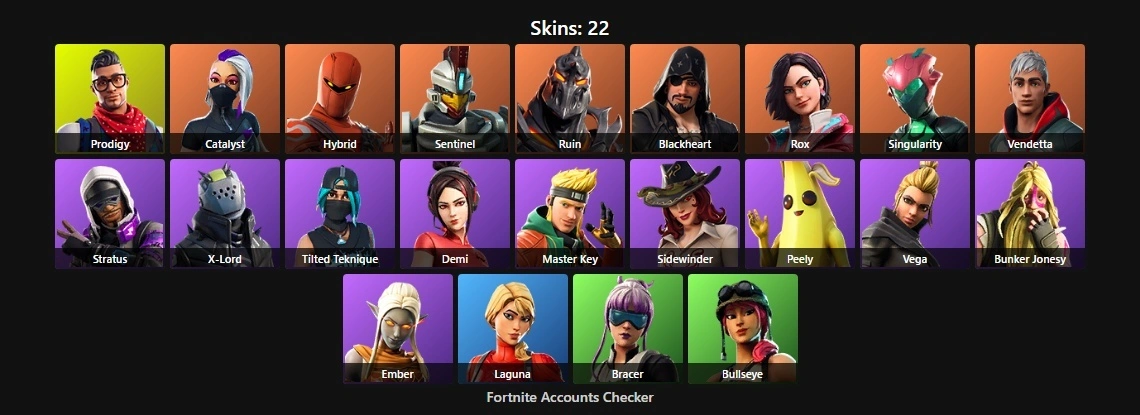 PC/XBOX/PSN 22 Skins⚡ | Peely | Prodigy | Catalyst | Hybrid | Sentinel | Ruin | Blackheart | Rox | Singularity | Vendetta | Stratus | X-Lord