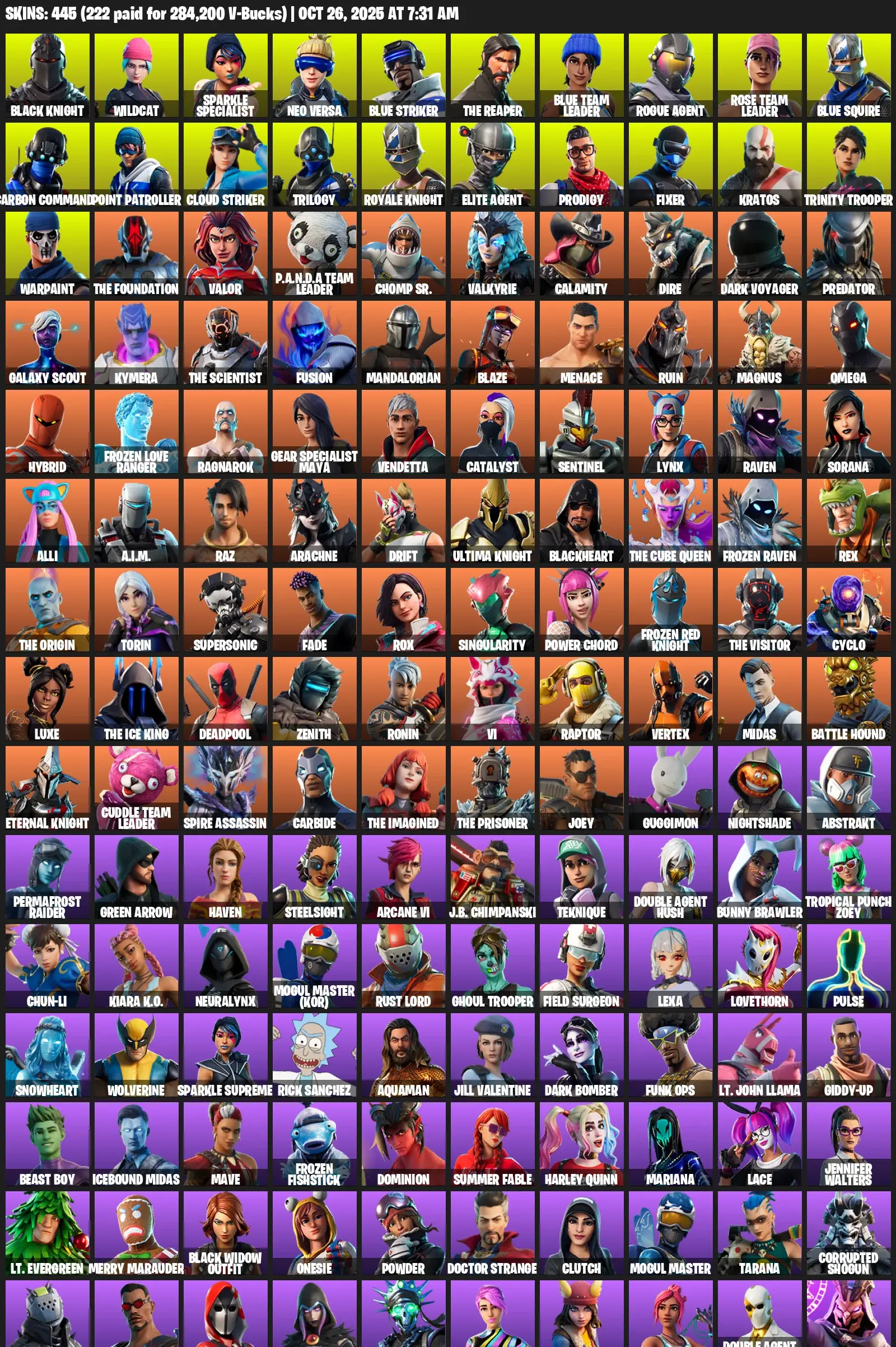 [PC/XBOX/PSN] 445 Skins | Black Knight | Wildcat | Sparkle Specialist | Neo Versa | Blue Striker | The Reaper | Blue Team Leader | Rogue Agent | Rose Team Leader | Blue Squire | Carbon Commando | Point Patroller | Cloud Striker | Trilogy | Royale Knight