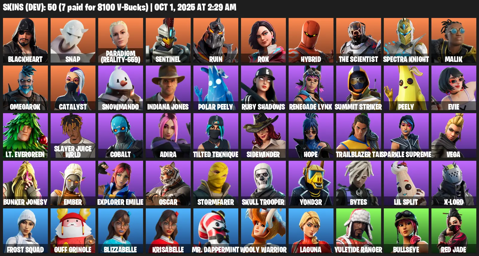 PC/XBOX/PSN 50 Skins⚡ | Peely | Skull Trooper | Blackheart | Snap | Paradigm (Reality-659) | Sentinel | Ruin | Rox | Hybrid | The Scientist | Spectra Knight