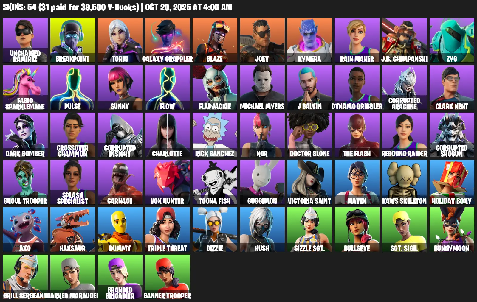 [PC/XBOX/PSN] 54 Skins | Unchained Ramirez | Breakpoint | Torin | Galaxy Grappler | Blaze | Joey | Kymera | Rain Maker | J.B. Chimpanski | Zyg | Fabio Sparklemane | Pulse | Sunny | Flow | Flapjackie | Michael Myers | J Balvin | Dynamo Dribbler