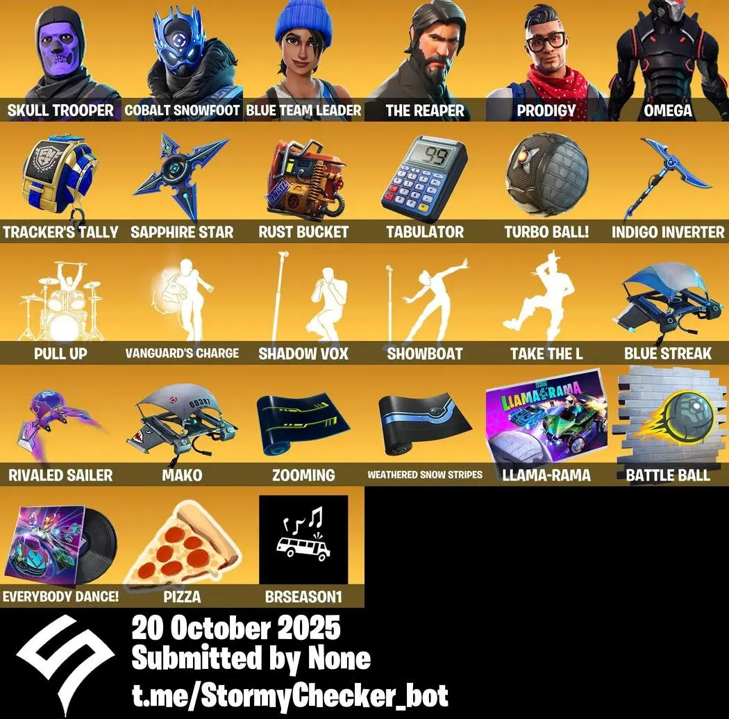 [PC/XBOX/PSN] | 34 Skins | OG Skull Trooper|Purple Skull Trooper|Cobalt Snowfoot |Blue Team Leader|The Reaper|Prodigy| Indigo Inverter|Default Pickaxe|Storm's Maw