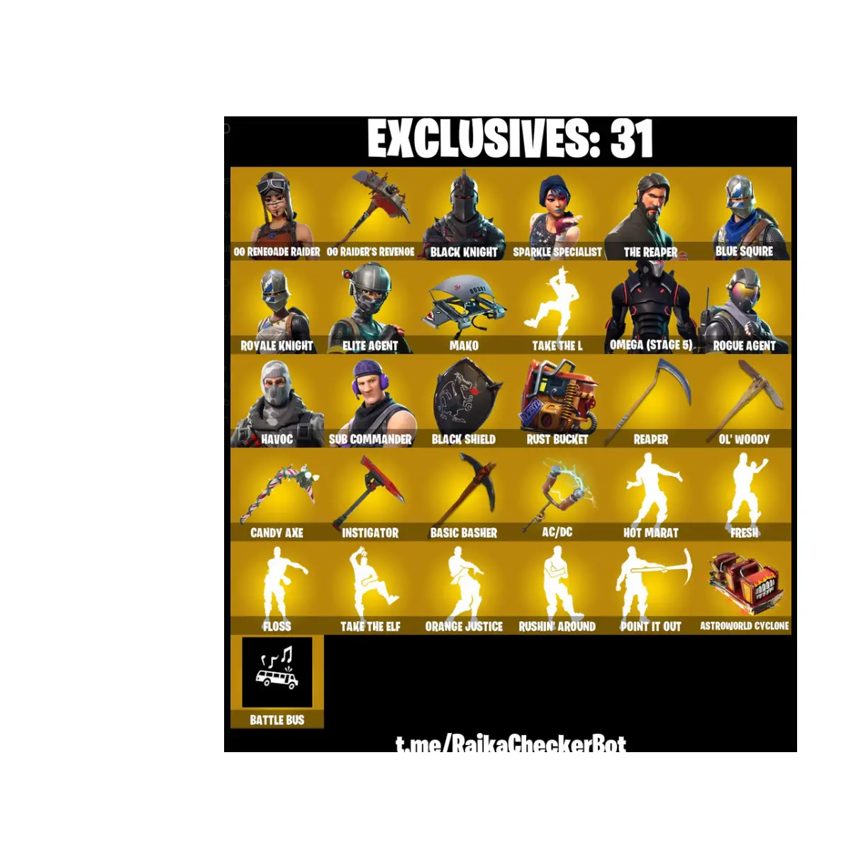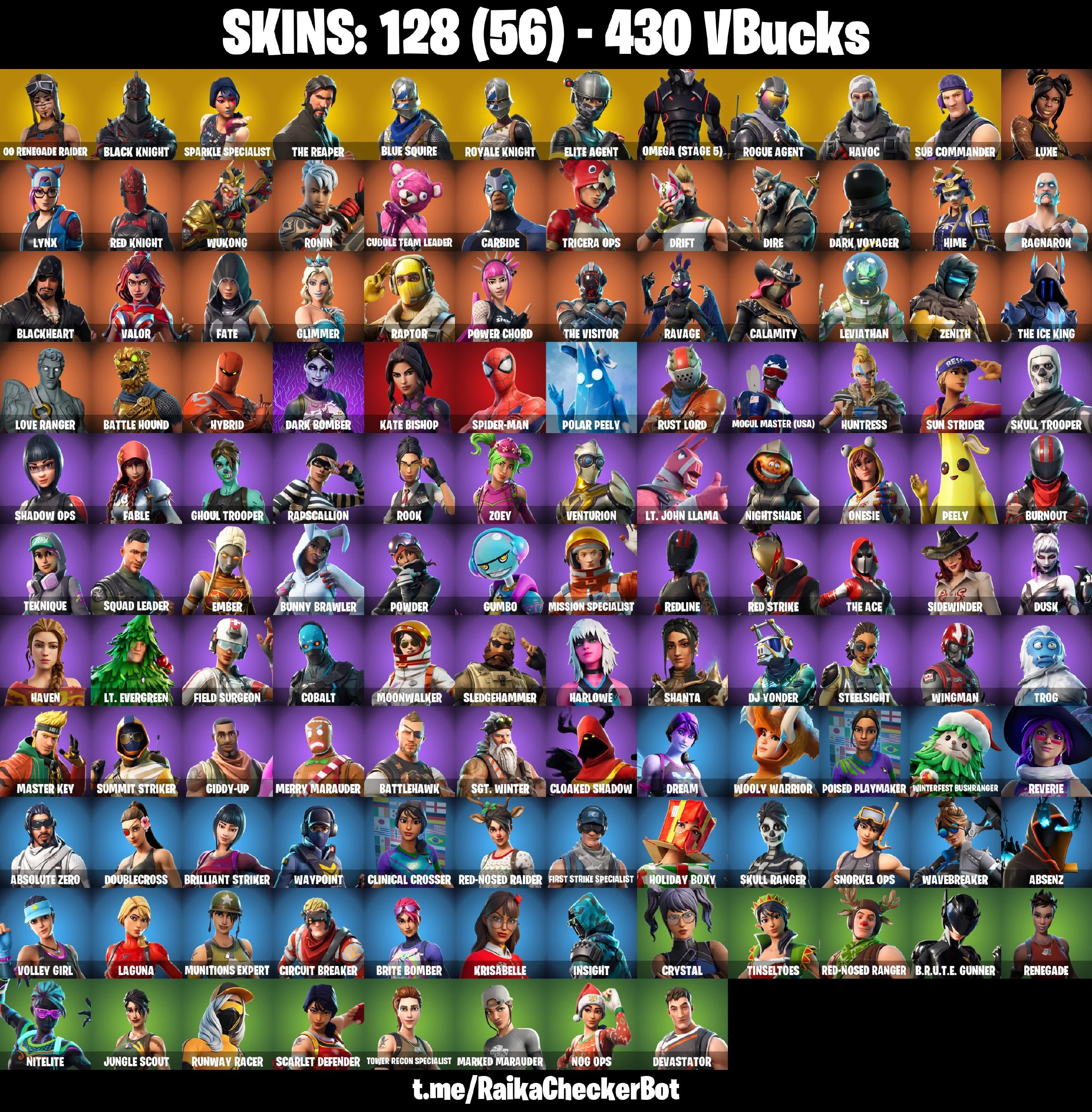 [PSN/XBOX/PC] 🍀 128 skins OG Renegade Raider ☘️ OG Raider's Revenge 🍀 Floss 🍀 Take The L 🍀 Black Knight 🍀 Sparkle Specialist 🍀 The Reaper 🌈 Blue Squire 🎩 Royale Knight | 430 VB