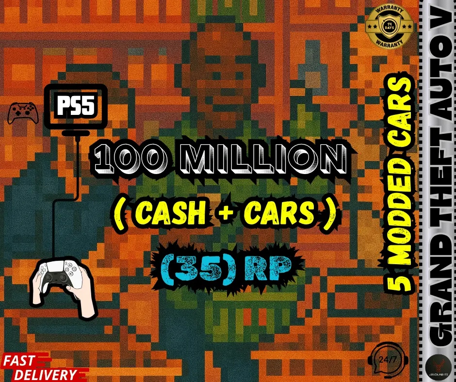 💸 [PS5] GTA 5 With 100M (Cash + Cars + 5 Modded Cars) | RP Rank 35 | PS5 Version | Full Access | Instant Delivery | Trusted Seller | GAM21