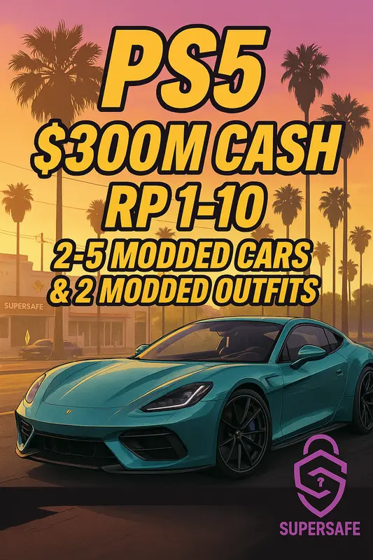 PS5 GTA Online Modded Account – 300M Money Boost (≈40M Cash + 50 Deluxos) | 2-5 Modded Cars & 2 Modded Outfits | RP 1–10 | Expanded & Enhanced | Instant Delivery | Full Access | #GTAPS5373