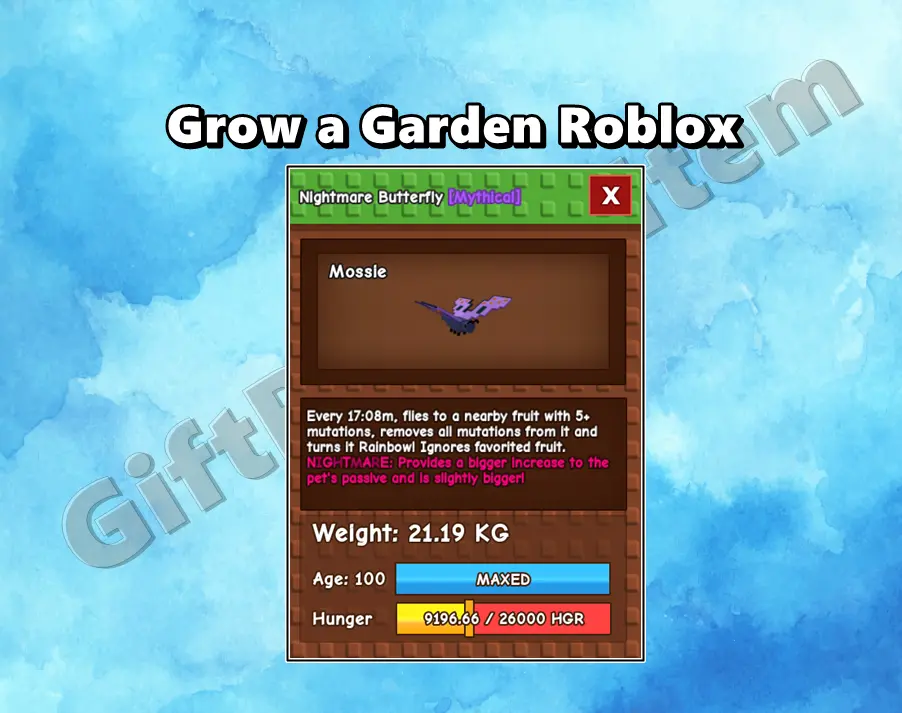 Mutation Nightmare Butterfly 20Kg ++ Age 100 Grow a Garden