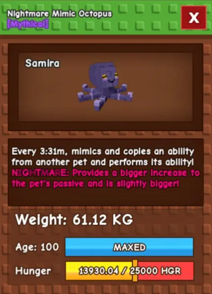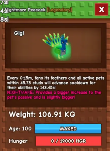 Semi Titanic Nightmare Wasp 67-68 kg cd : 60s (cooldown other pets by 113s) - Grow A Garden