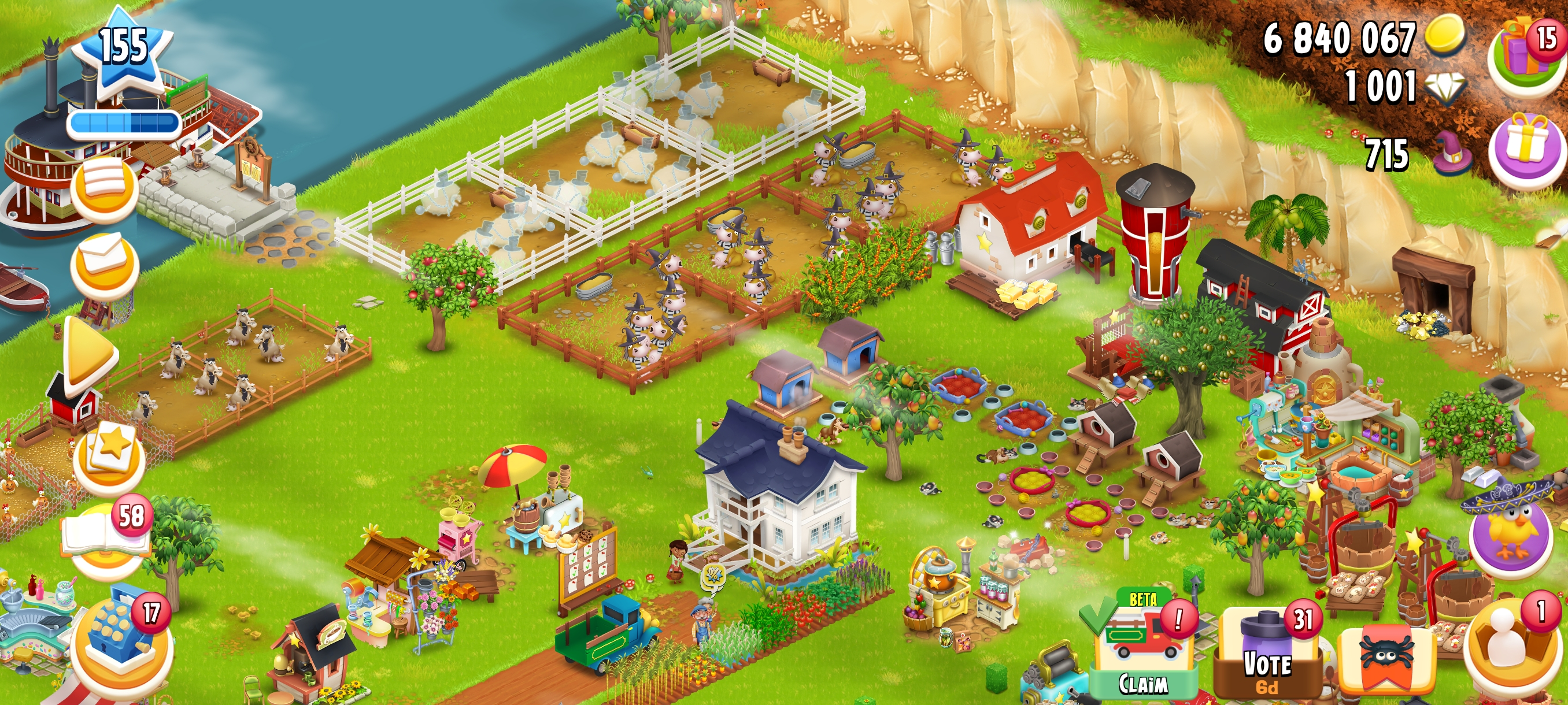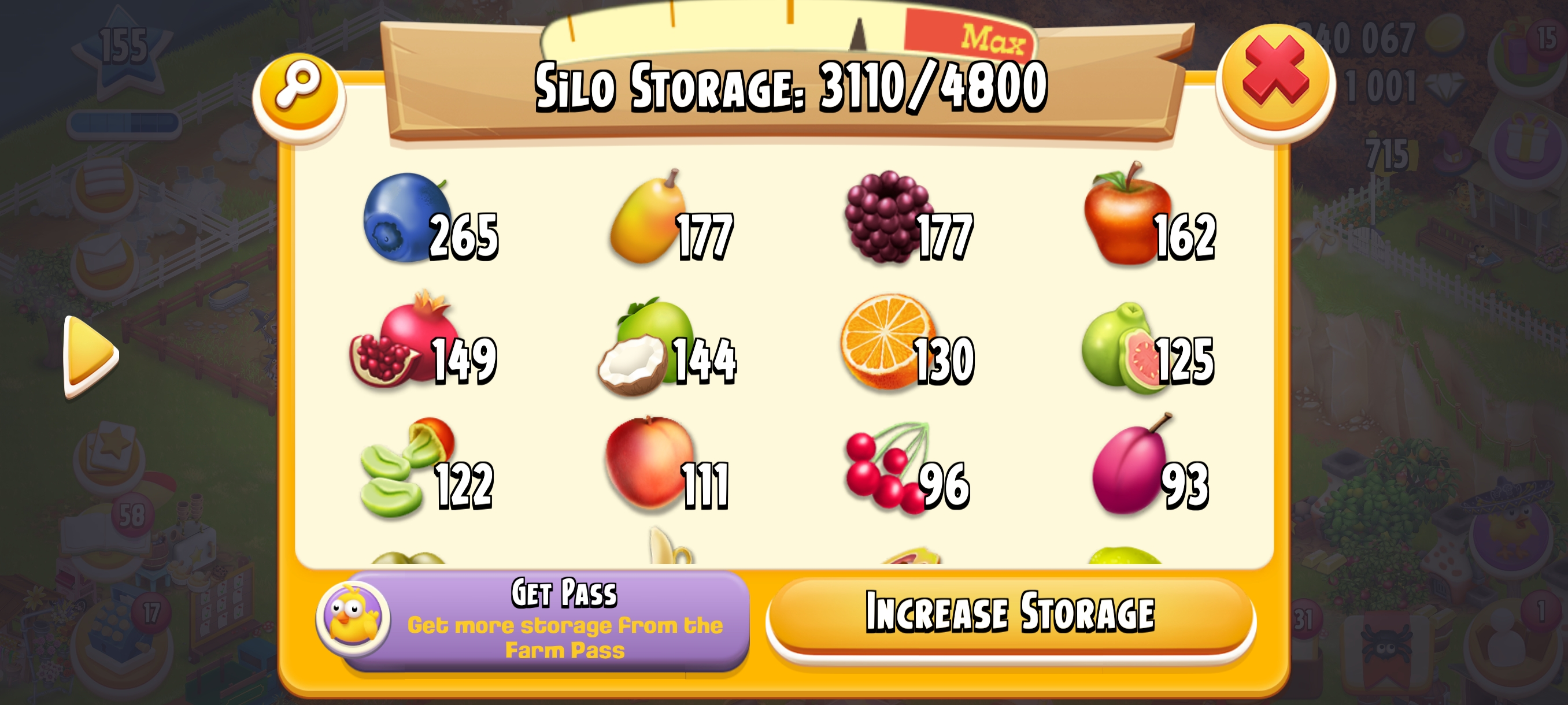 [High Barn] LEVEL 155 🏚️ 10100 Barn Storage 🌾 4800 Silo Storage💰 6.8M+ Coins & 💎 1001 Diamonds⚡ Instant Delivery