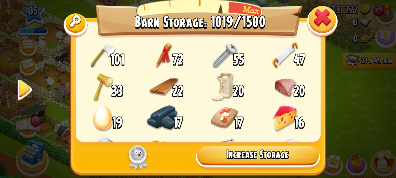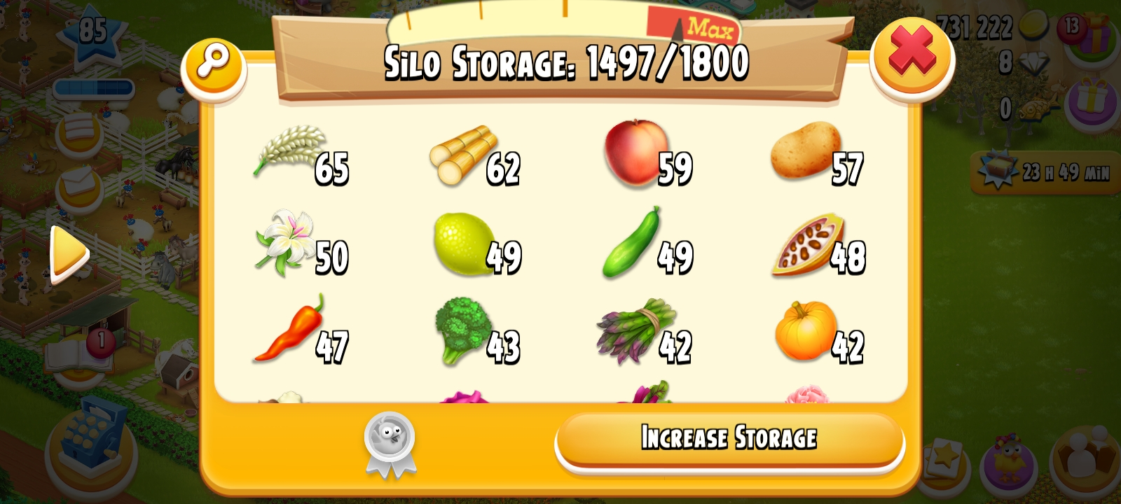 M02✨LEVEL:85✨CHEAPEST AND DECORATED HAY DAY PREMIUM ACCOUNT✨BARN:1500✨SILO:1800✨INSTANT DELIVERY