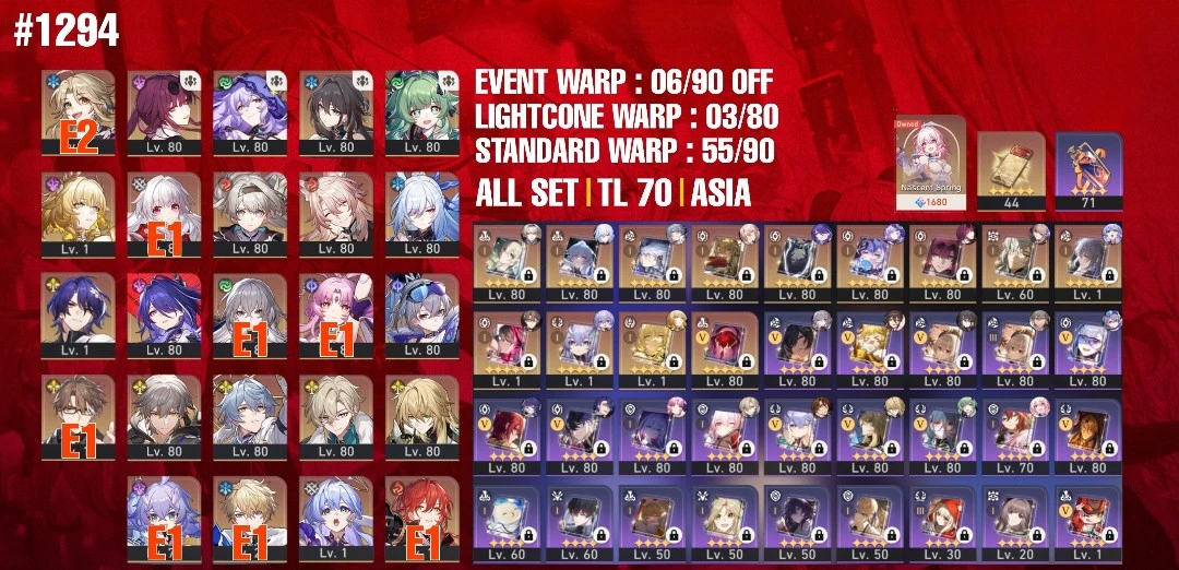 ASIA 🌟 TL 70 🌟 15 LIMITED CHAR 🌟 11 SIGNATURE LIGHTCONE 🌟 44 GOLD TICKET 🌟 FUXUAN E1