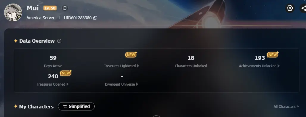 🌎 NA | 50 TL | 🌟 18 + 4 Leg | Jing Yuan | Trailblazer | Clara | Gepard | Seele | Natasha | Yukong | Dan Heng | Hook | March 7th | Sushang | Tingyun | Qingque | Pela | Serval | Herta