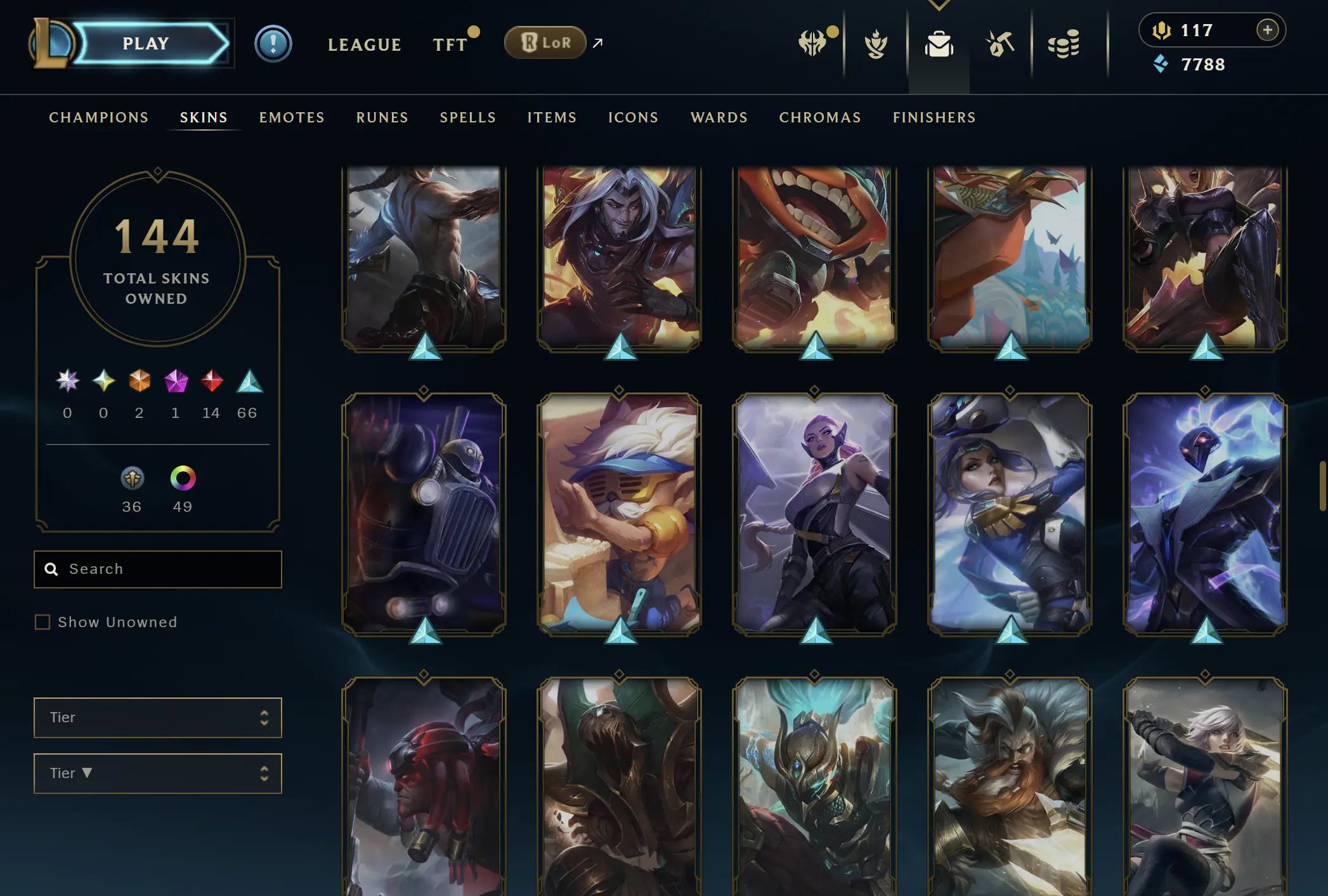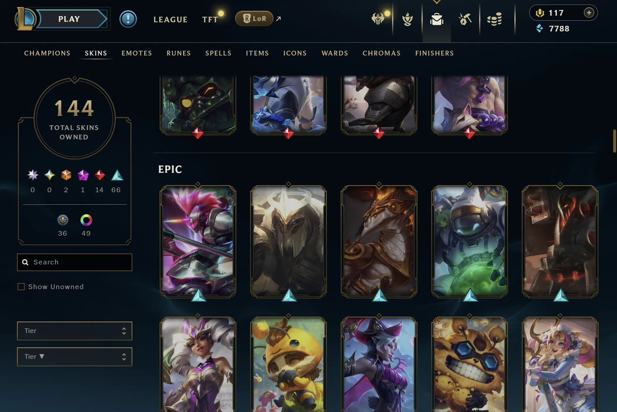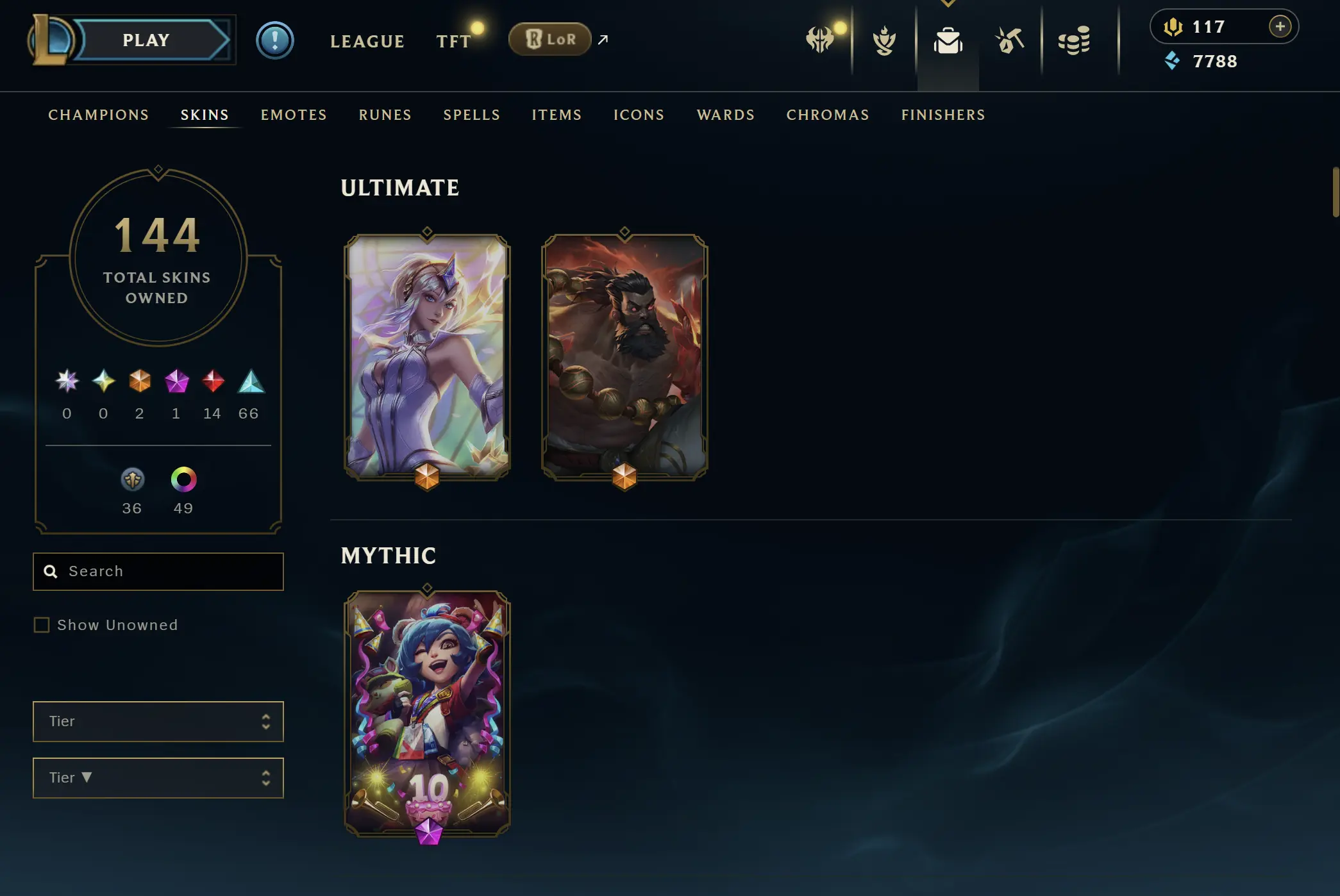 EUNE 144 skins | 167 champions | Elementalist Lux | Dawnbringer Riven | Spirit Guard Udyr | Nightbringer Yasuo | God-King Garen | Final Boss Veigar | Firefighter Tristana | Battle Queen Katarina | PROJECT: Yi | Annie in Wonderland