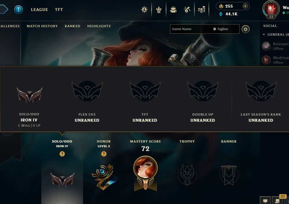 ⚡ 【 ME 】 ⸱ Iron IV 2.1% WR +37Games ⚡ | Hand ⸱ ( leveled + De-ranked ✌️ ) | Unverified ✅ | 44104 BE 💵 | 255 RP 💰 | Untouched-Loot 🔒 | Check Description 🔰