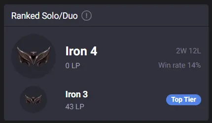 ⚫ NA | Iron IV – 2W–12L (14% WR / Out of Placements / Low MMR / Honor Lvl 3) | 💰30K+ BE | 🧭Lvl 30 | 🧙♂️20 Champs | ⚡Instant Delivery | 🔒 Unverified