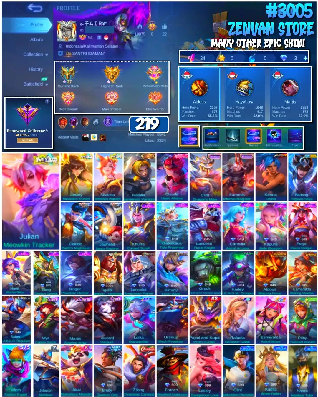 #3005 🔥 219 Skins 🔥 Collector Natalia 🔥 Seint Seiya Badang 🔥 KoF Karina 🔥 Many Epic 🔥 Safe Account ✅