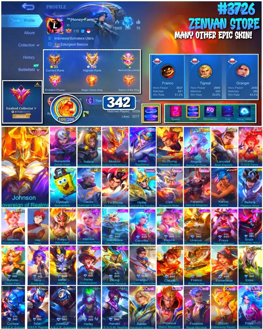 #3725 🔥 328 Skins 🔥 Legend Alucard 🔥 Collector Natalia 🔥 Sasuke 🔥 Exorcist Hayabusa 🔥 SpongeBob 🔥 Many Limited 🔥 Many Epic 🔥 Safe Account ✅