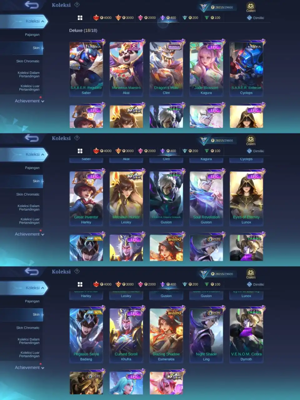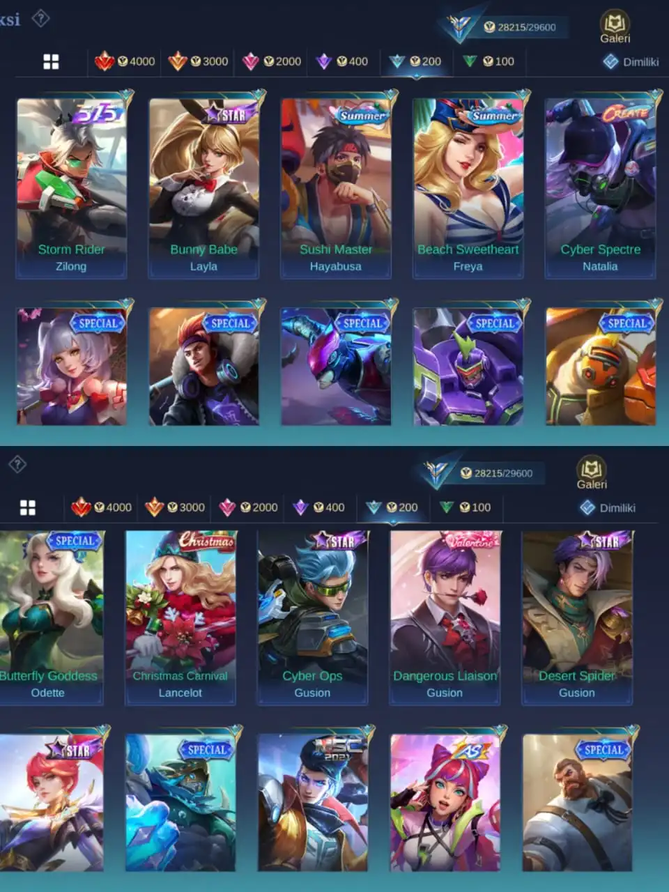 BEST MEGA DEAL✨HERO 105✨SKIN 138✨EMBLEM MAX ✨FLORIN SANRIO✨BADANG SEIYA ✨CLINT MYTH✨CLAUDE MSC✨BLAZING MASHA✨S.A.B.E.R 2x✨DRAGON 2x✨2x MYSTIC✨CLAUDE MSC✨EPIC 6✨SAFE ACC✨INSTAN DELIVERY
